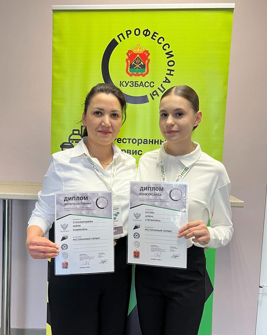 Параллельно в потоках соревнований в Новокузнецке, Кемеровской области-Кузбасс студентки отделения сервисных технологий и дизайна Бусова Алина (наставник Суханбирдиева Нейля Рафиковна) и Аксёнова Арина (наставник Зайнутдинова Диляра Растямовна) показали свое мастерство по компетенциям «Ресторанный сервис» и «Администрирование отеля».
