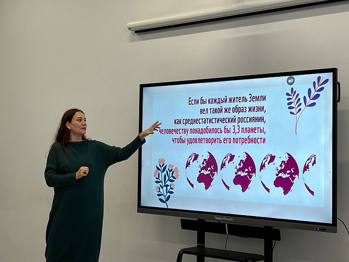 Занятие провела преподаватель Кулишова Анастасия Анатольевна совместно с приглашённым гостем — Александрой Александровной Ирушкиной, основателем экологического волонтёрского проекта «Астрасбор» и городского эко-клуба «Молодые зелёные».