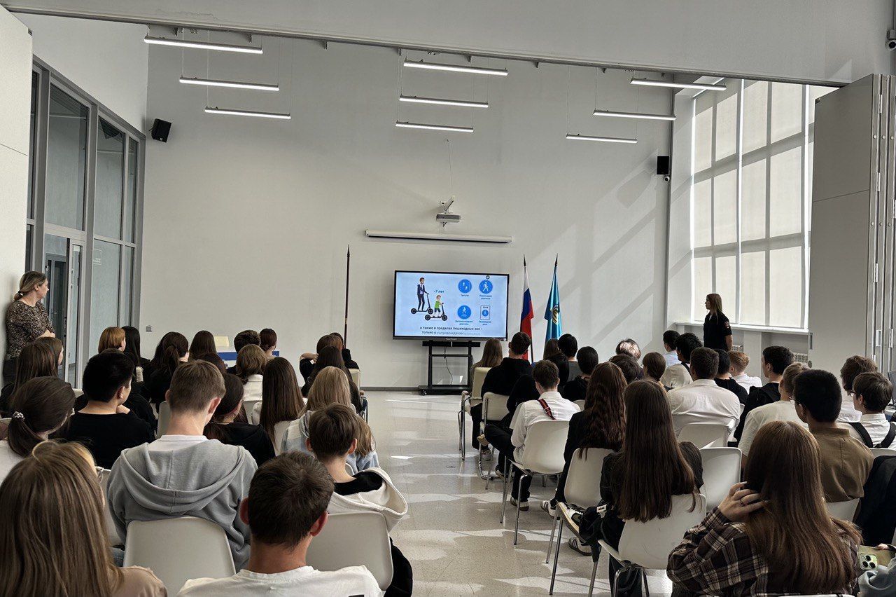 Инспектор рассказала студентам о наиболее распространённых нарушениях среди водителей двухколёсных транспортных средств и последствиях невнимательности на дороге.