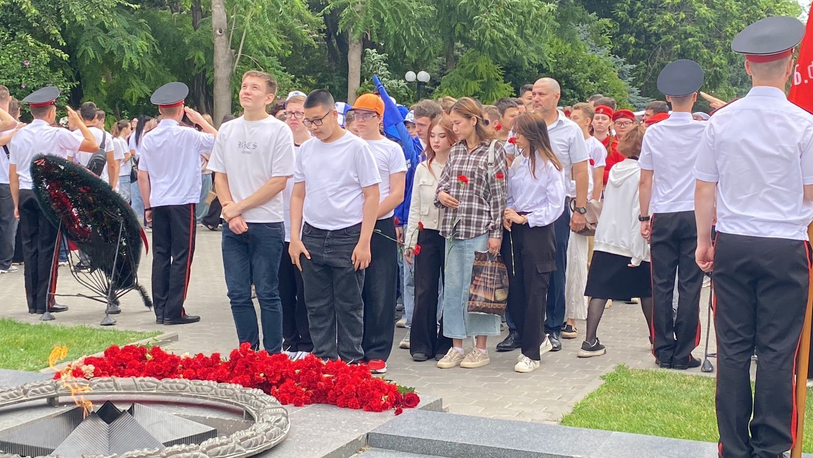 Студенты отделения ИТЭП в завершении «Линейки памяти и скорби» возложили живые цветы к Братской могиле.