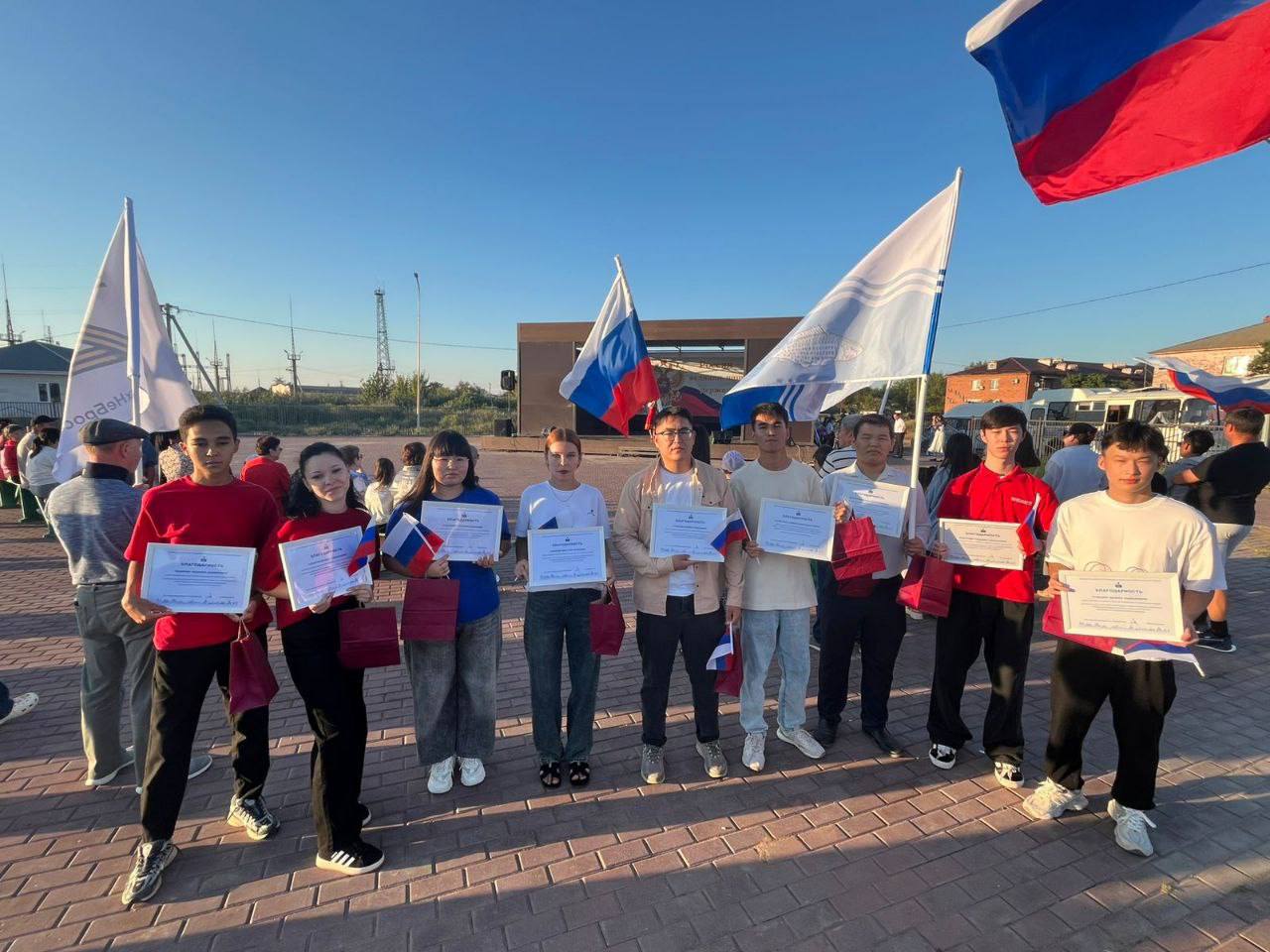 Володарские студенты АГПК развернули многометровый триколор в День флага России
