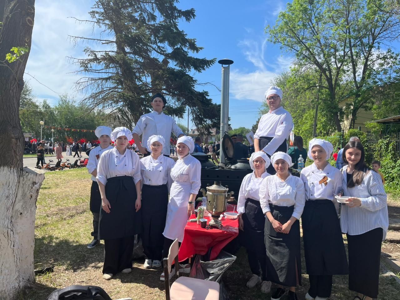 А на полевой кухне студенты, обучающиеся по специальности «Поварское и кондитерское дело» угощали всех желающих ароматной солдатской кашей, которую приготовили активисты Лиманского станичного казачьего общества.