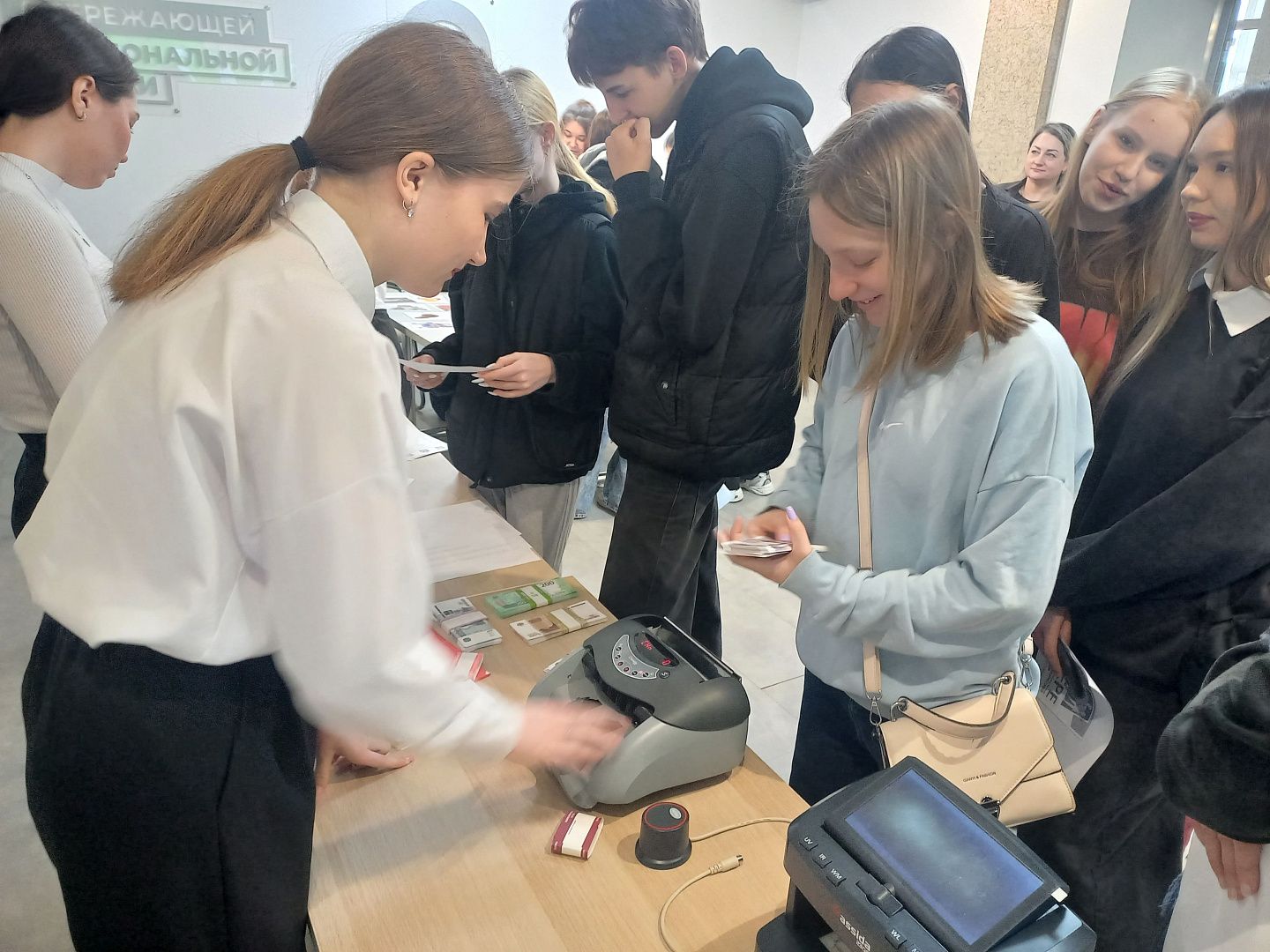 • по специальности «Банковское дело» показали гостям, как пользоваться аппаратом для счёта банковских купюр и проверять их подлинность;
