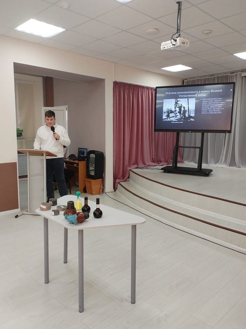В рамках встречи студенты рассказали про нефтяную промышленность в годы Великой Отечественной войны. Провели содержательную встречу, охватившую как героические страницы истории отрасли в годы войны, так и её современное состояние. Они не только поделились интересными фактами и уникальными фотографиями, но и наглядно продемонстрировали процесс обучения будущих специалистов в колледже, подкрепив рассказ демонстрационными материалами, раскрывающие суть профессии.