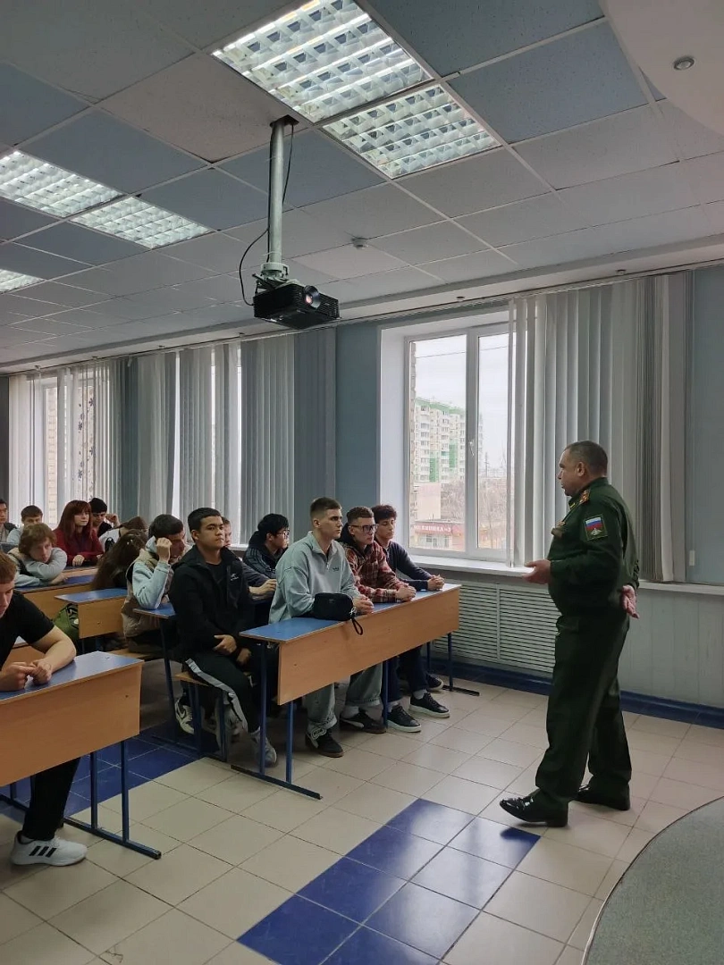 25 ноября в Астраханском государственном политехническом колледже состоялась профориентационная встреча студентов выпускных групп с представителем Федерального государственного казённого военного образовательного учреждения высшего образования «Военная академия радиационной, химической и биологической защиты имени Маршала Советского Союза С. К. Тимошенко» Андреем Борисовичем Никулиным.