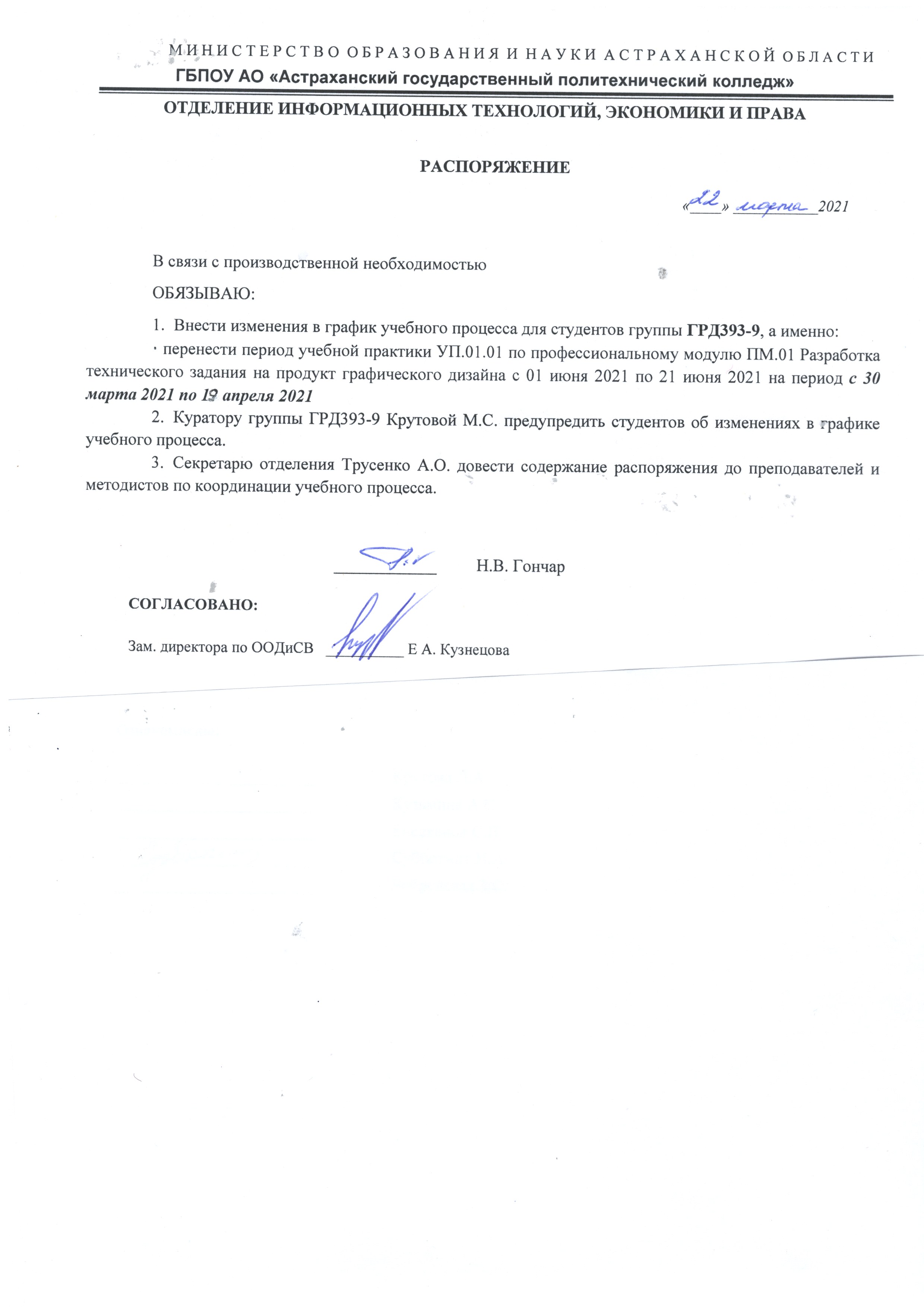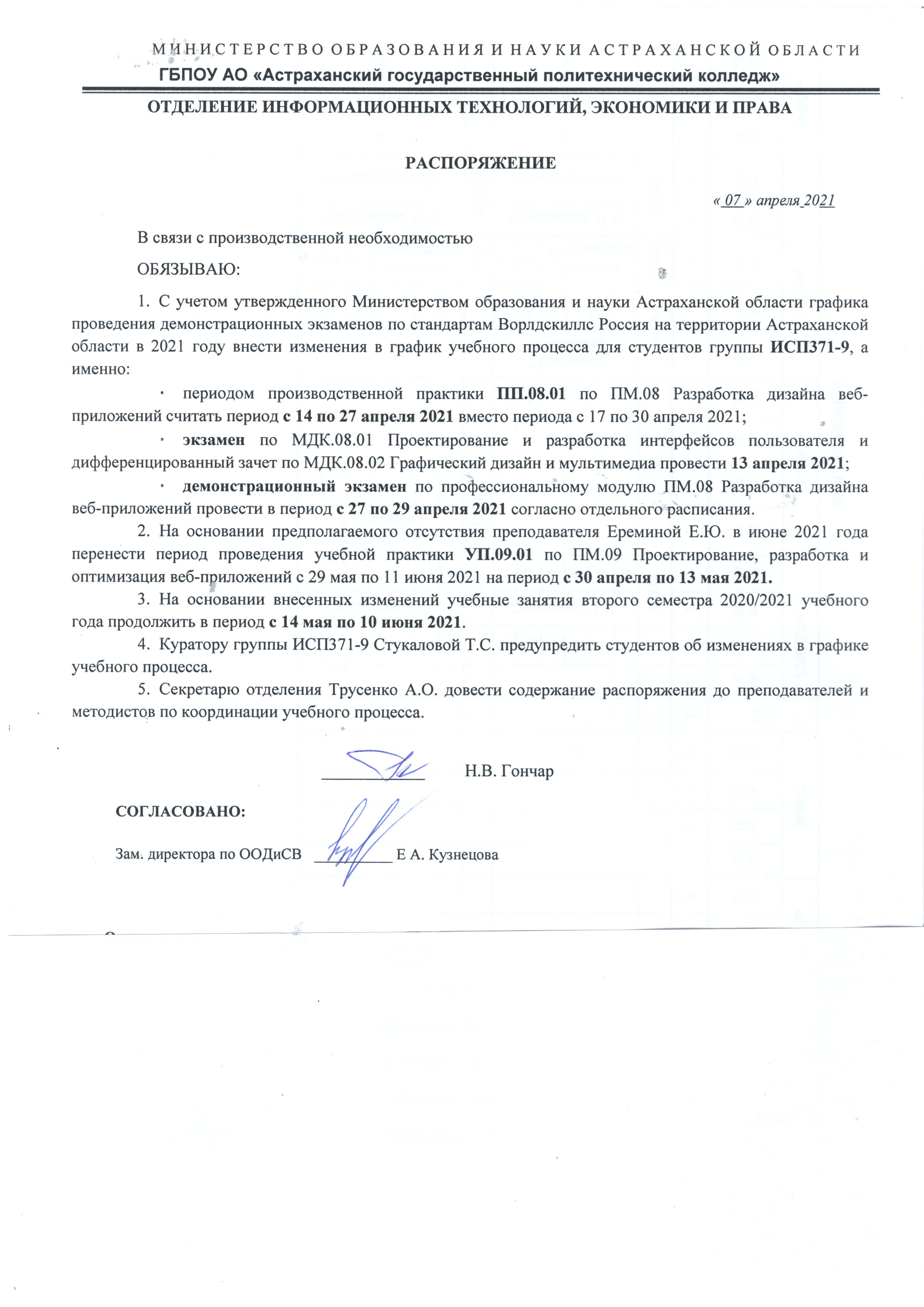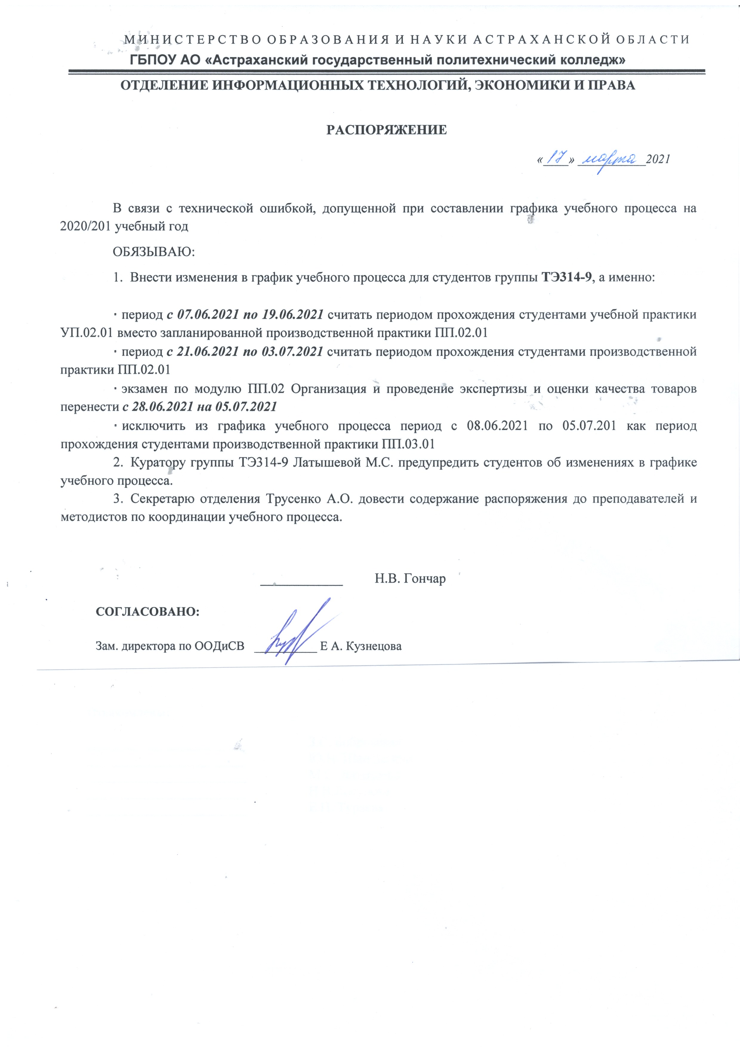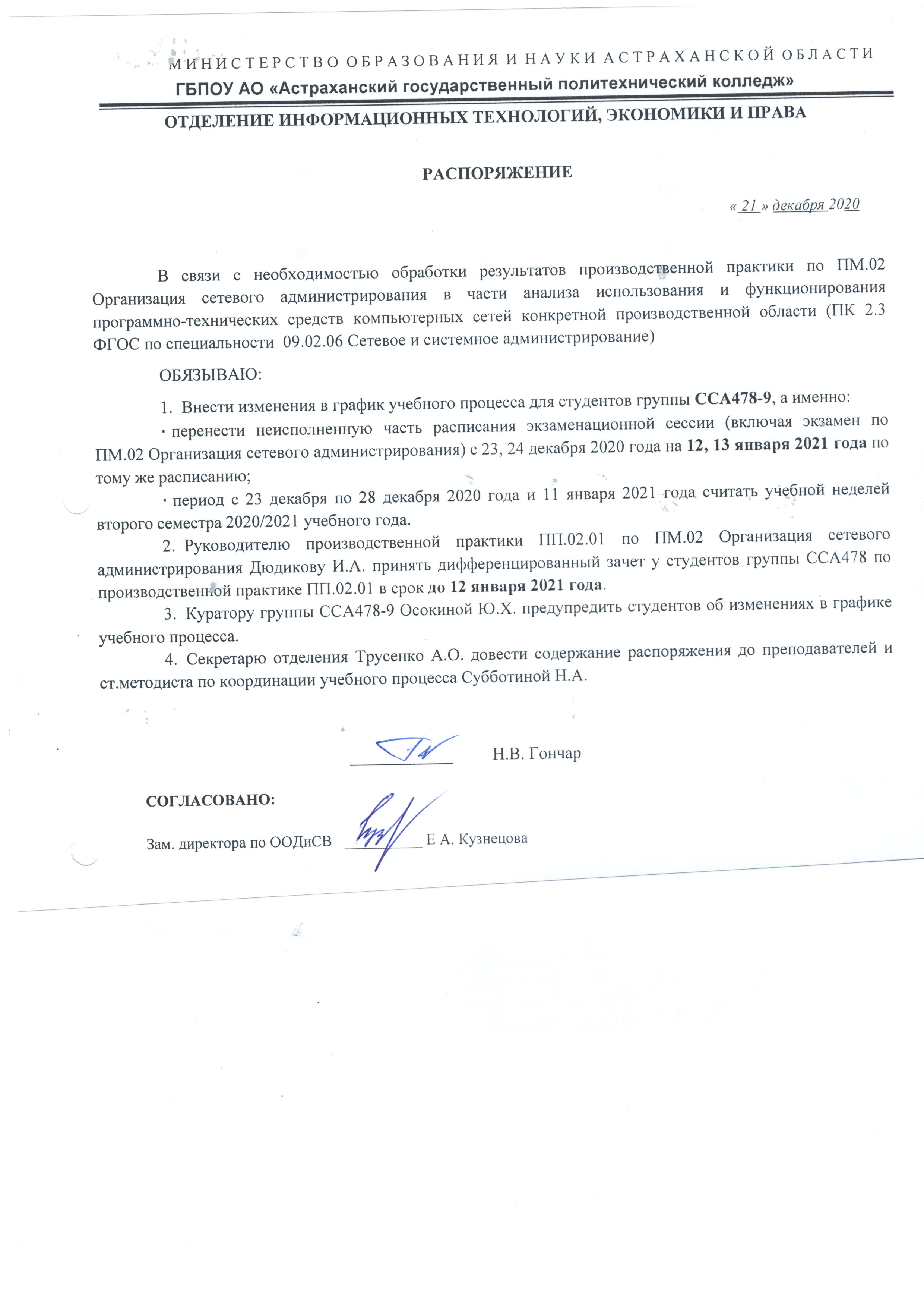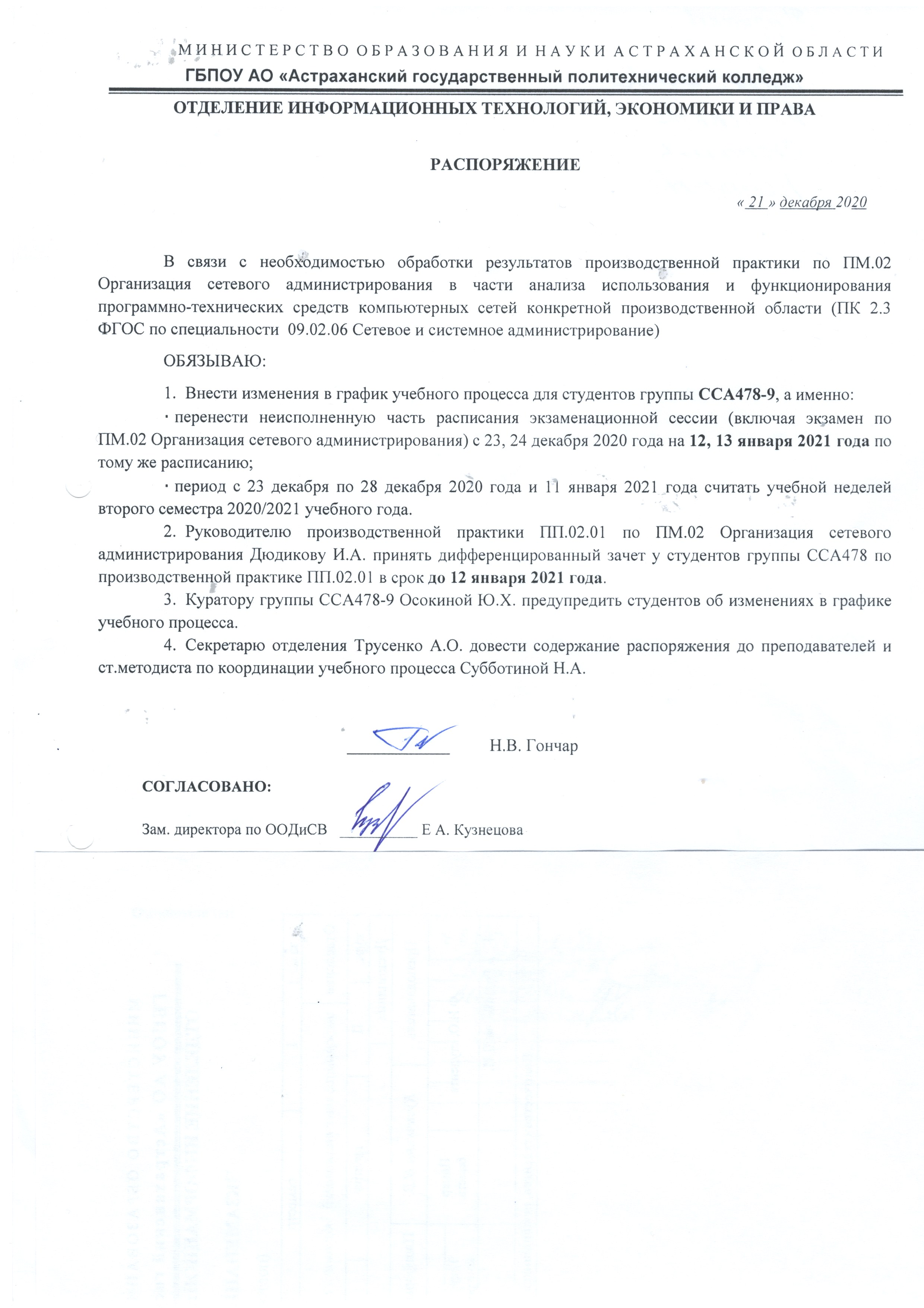 Внесение изменений в график учебного процесса группы ССА 478 на