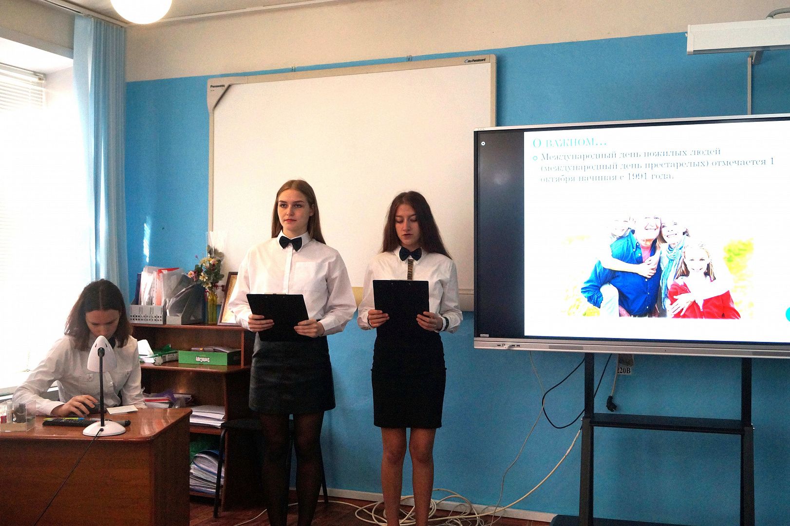 Студентки Александра Андросова и Алеся Волкова продемонстрировали видеоролик об истории праздника, рассказали о том, как его отмечают в разных уголках нашей страны, а также подготовили презентационные материалы о своих дедушках и бабушках.