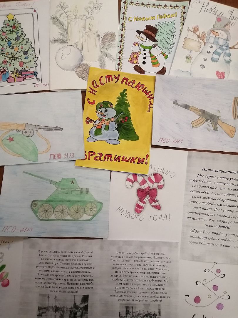 «Поздравляем всех, кто в новогоднюю ночь со всей серьезностью продолжают заботиться о безопасности границ и покоя нашей Родины! Мы гордимся вами и знаем, что вы - смелые мужчины, за чьими спинами мы мирно спим!», – написали студенты группы ПК – 1129 военнослужащим, которые выполняет боевые задачи в зоне специальной военной операции.