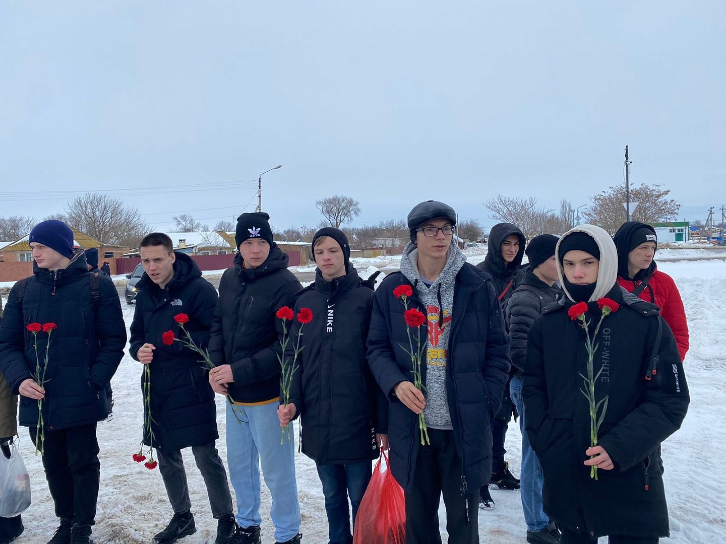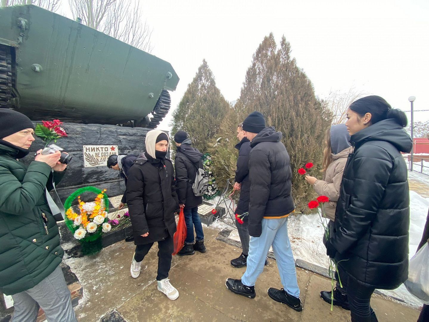Студенты Лиманского филиала АГПК почтили память погибших воинов минутой молчания и возложили цветы к памятнику.