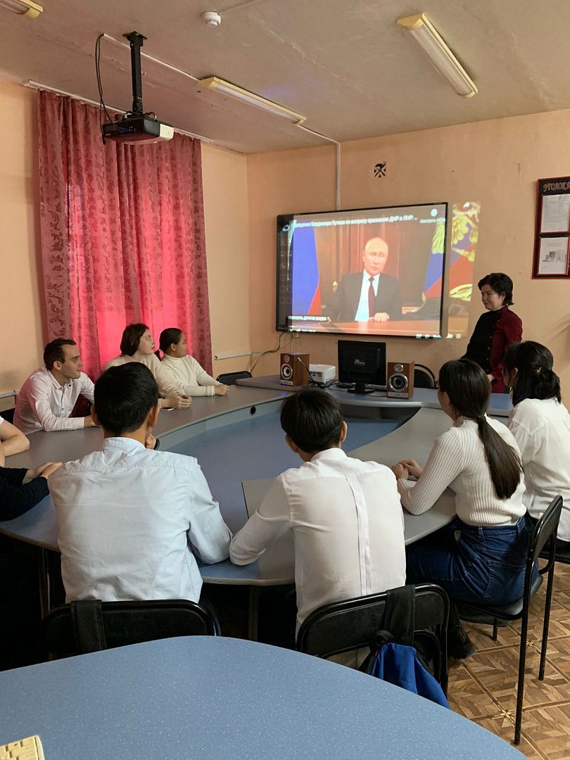 Учащимся рассказали о событиях на киевском Майдане в 2014 году и трагедии в Доме профсоюзов, также обучающиеся посмотрели фрагмент выступления Президента России Владимира Путина.