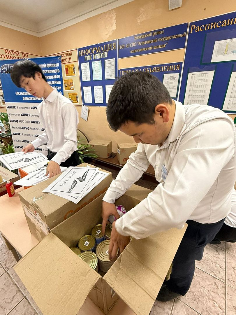 В Володарском филиале Астраханского государственного политехнического колледжа был организован сбор гуманитарной помощи для военнослужащих — участников специальной военной операции.