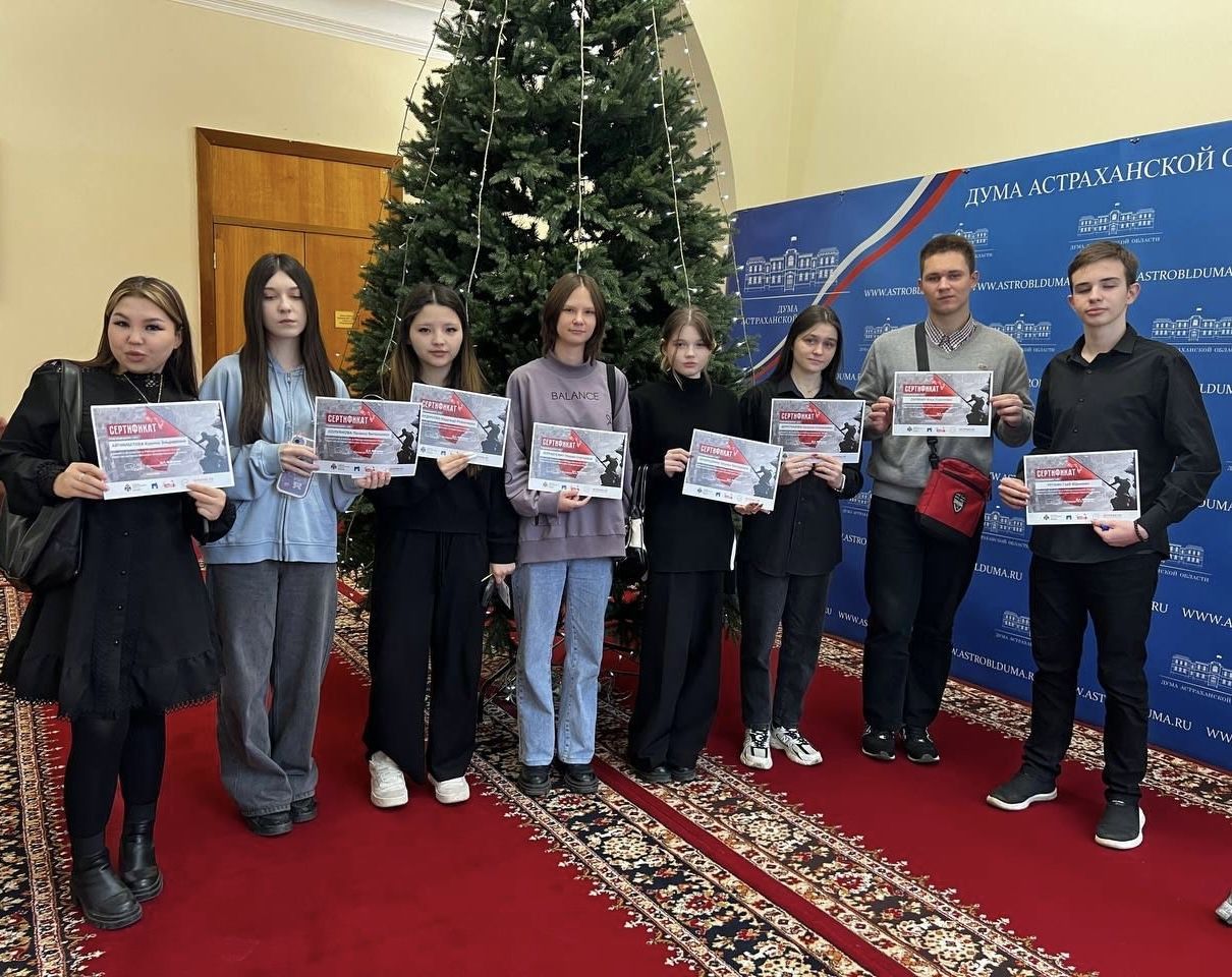 Студенты групп ЮРС-1109 и ЮРС-1209 в сопровождении Светланы Львовны Шапошниковой посетили Думу Астраханской области. Здесь ребята прошли тест по истории Великой Отечественной войны. На выбор предлагалось два варианта тестирования – базовый и профильный. Каждый вариант включал 40 вопросов, охватывающих ключевые моменты событий тех лет.