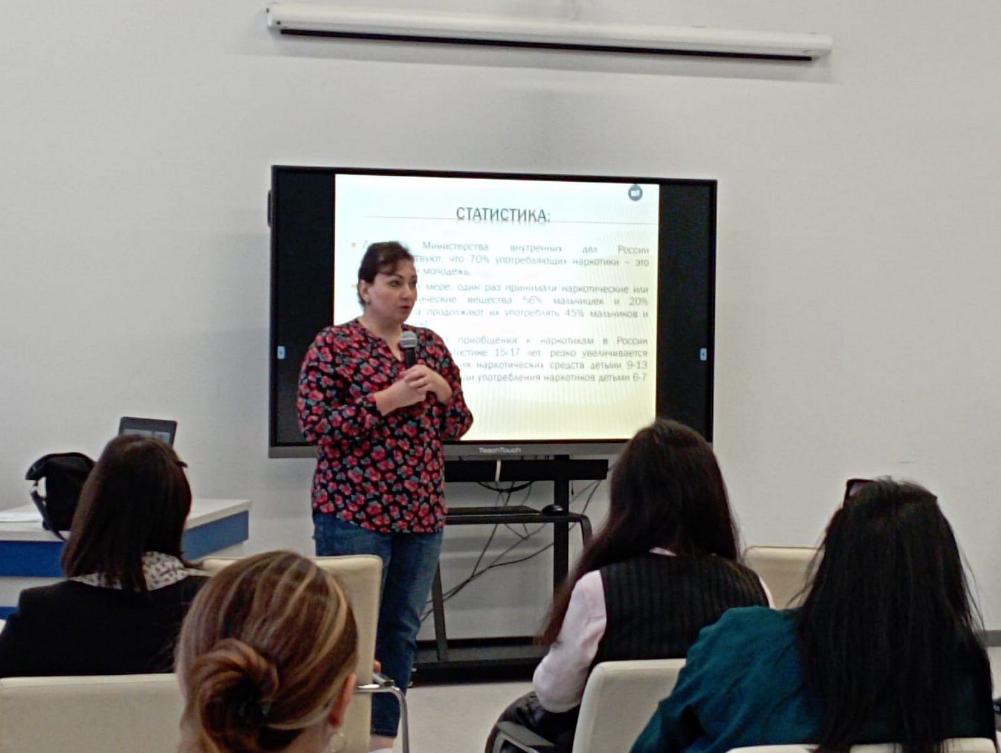Ирина Владимировна рассказала присутствующим о том, что в последнее время все больше подростков приобщаются к приему различного рода психоактивных веществ. Такая популярность связана с чрезвычайно широкой распространенностью и продажей нелегальных наркотиков, психологической незрелостью ребенка, его социальным окружением, обстановкой в семье.