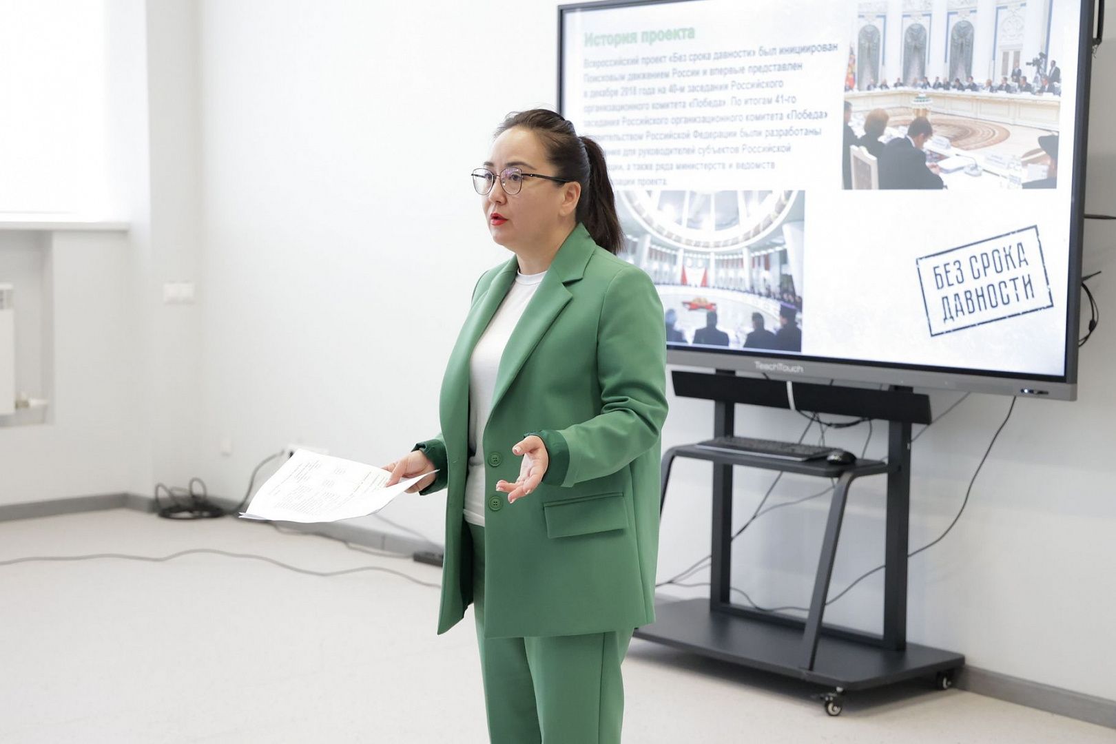 Преподаватель Ляйла Кизатулловна Валиева провела совместно с учащимися урок-реконструкцию исторических фактов «Без срока давности». Данный формат исторического погружения в прошлое позволяет обучающимся ставить себя на место исторических персонажей и пробовать сделать непростой выбор. Все ситуации основаны на реальных событиях и переносят участников то в Аджимушкайские каменоломни, то в деревню Хацунь Брянской области, то в блокадный Ленинград.
