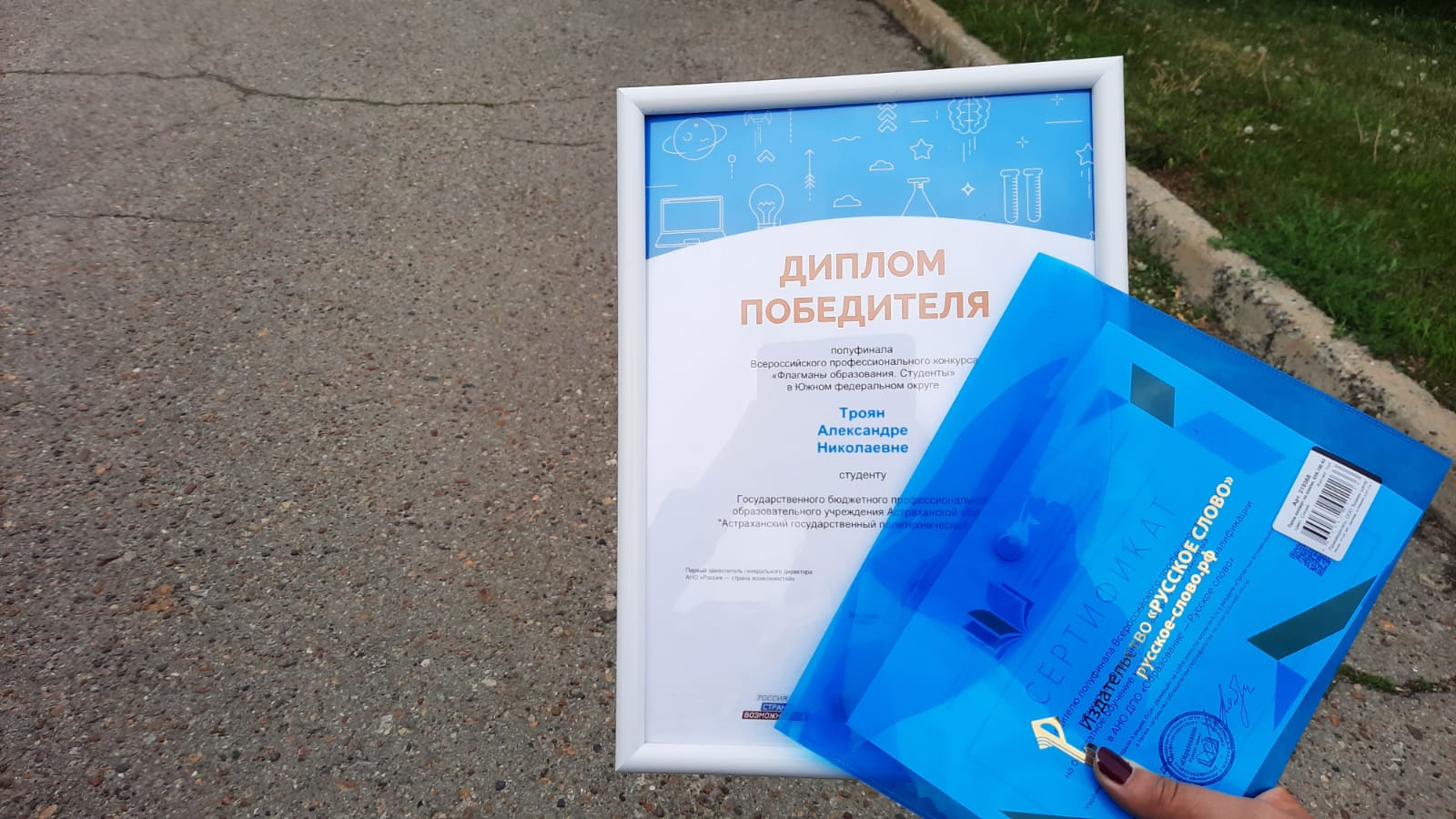 Стоит отметить, что наша студентка – единственная финалистка из Астраханской области. Помимо диплома победителя и возможности показать себя в финале конкурса, девушка получила сертификат на бесплатное обучение на одном курсе повышения квалификации в АНО ДПО «Образование-Русское слово».