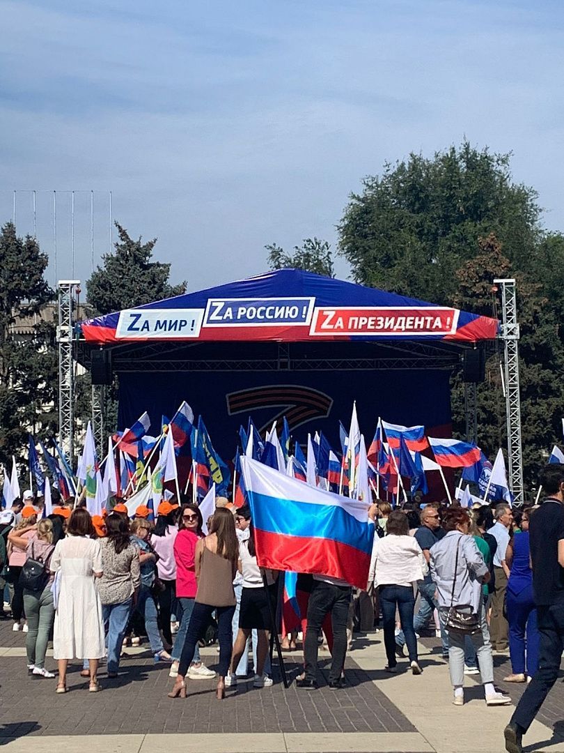 В минувшую пятницу в Астрахани прошёл митинг-концерт в поддержку референдума о присоединении Донбасса, а также Херсонской и Запорожской областей к России. На площади Ленина собрались около 10 тысяч человек: представители профсоюзов и ветеранских организаций, общественники, волонтёры, активная молодёжь.