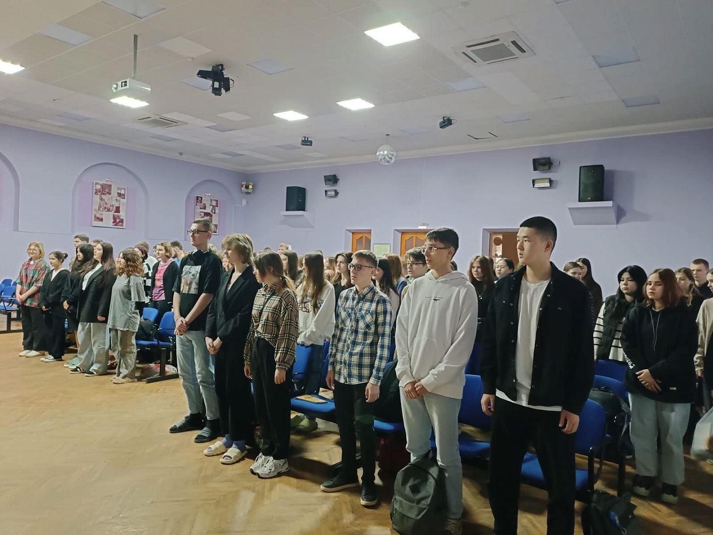 11 марта 2024 г. в политехническом колледже после торжественной линейки в учебных группах прошло очередное внеурочное занятие из цикла «Разговоры о важном».
