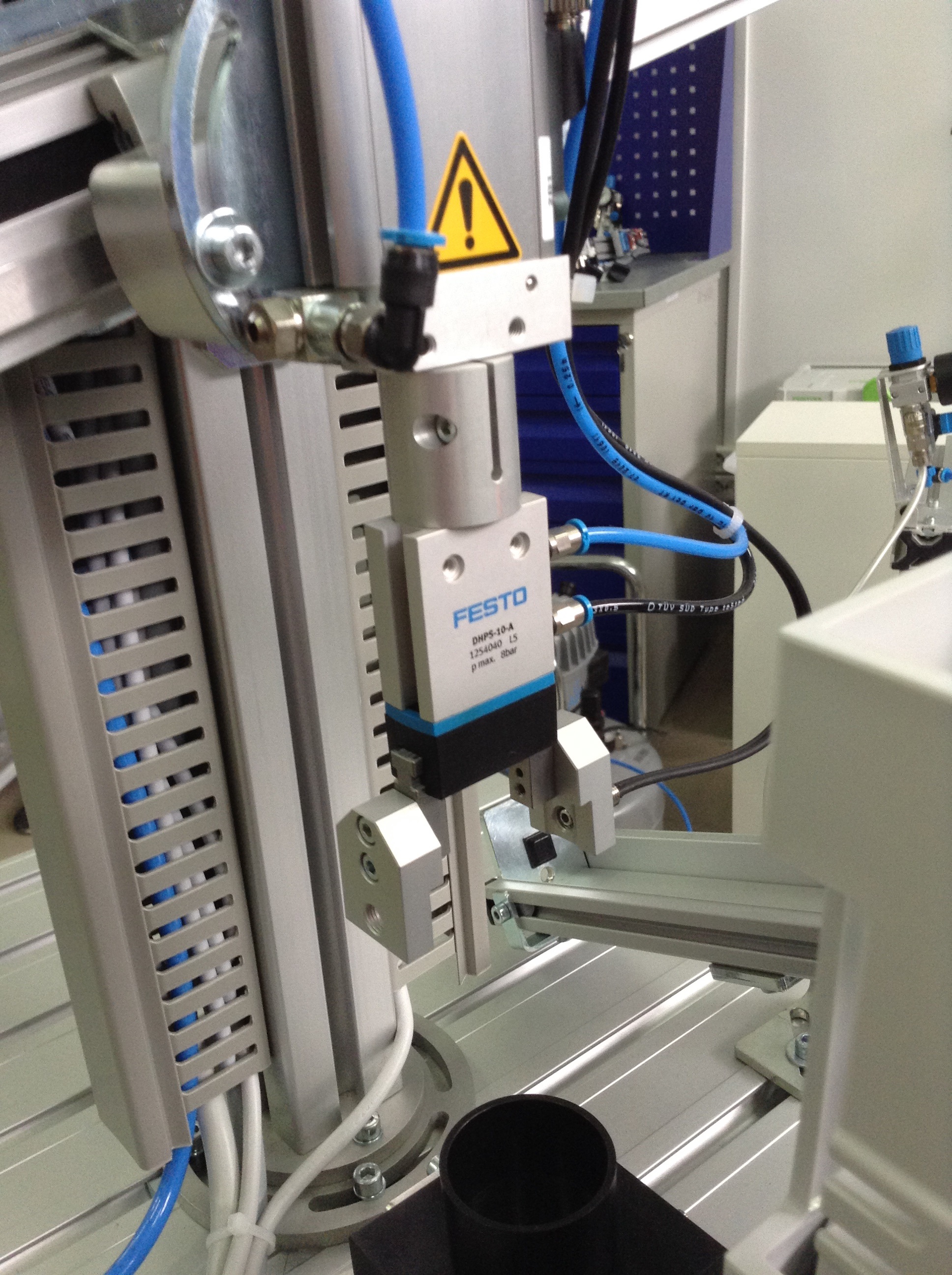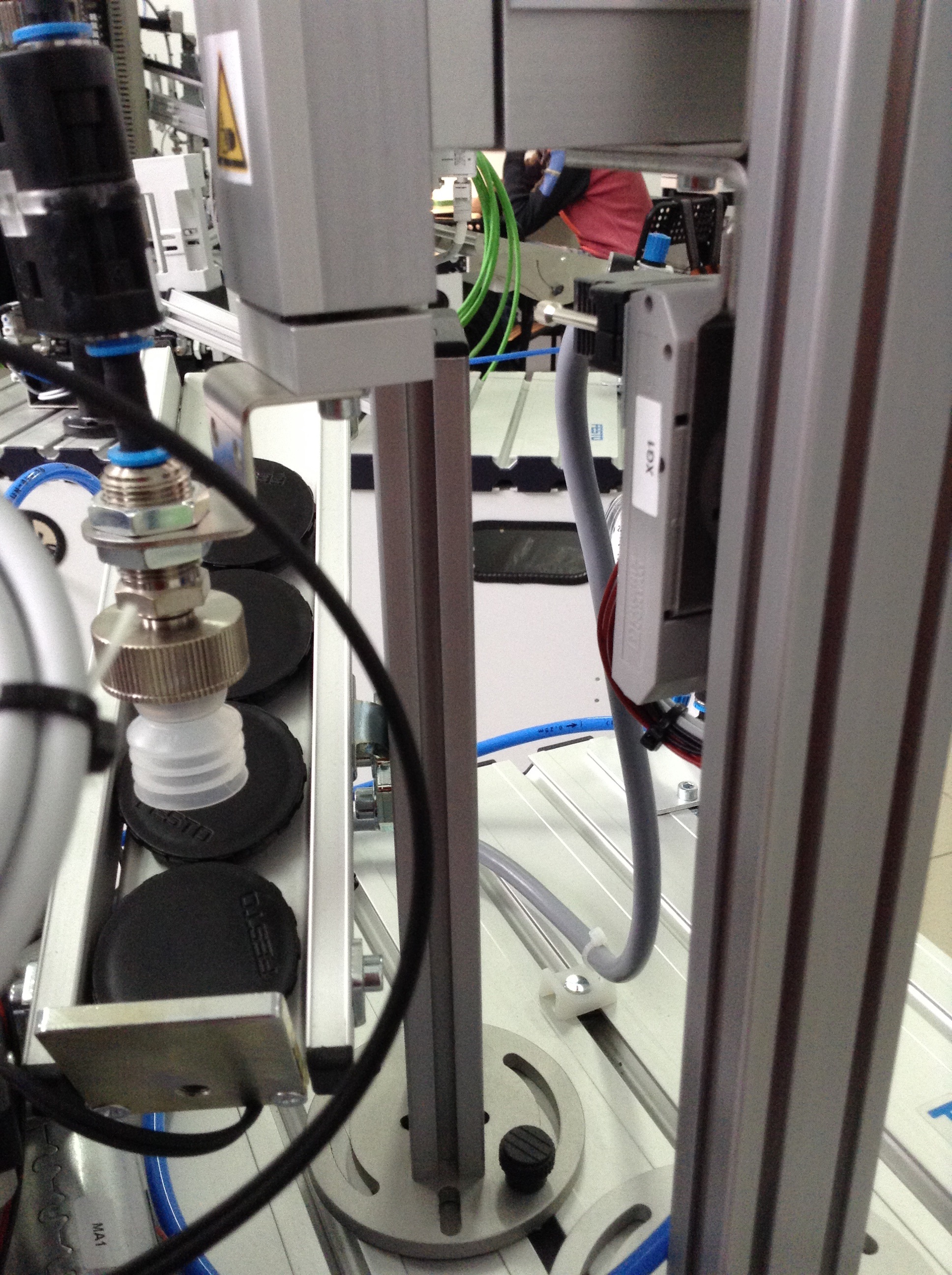 В системе установлены пневматические компоненты (цилиндры, механизмы захвата) и электрические компоненты (датчики, электродвигатели электромагнитные клапаны) На пневматические компоненты подается сжатый воздух с помощью компрессора. На служебном блоке компрессора установлено давление 6 бар |