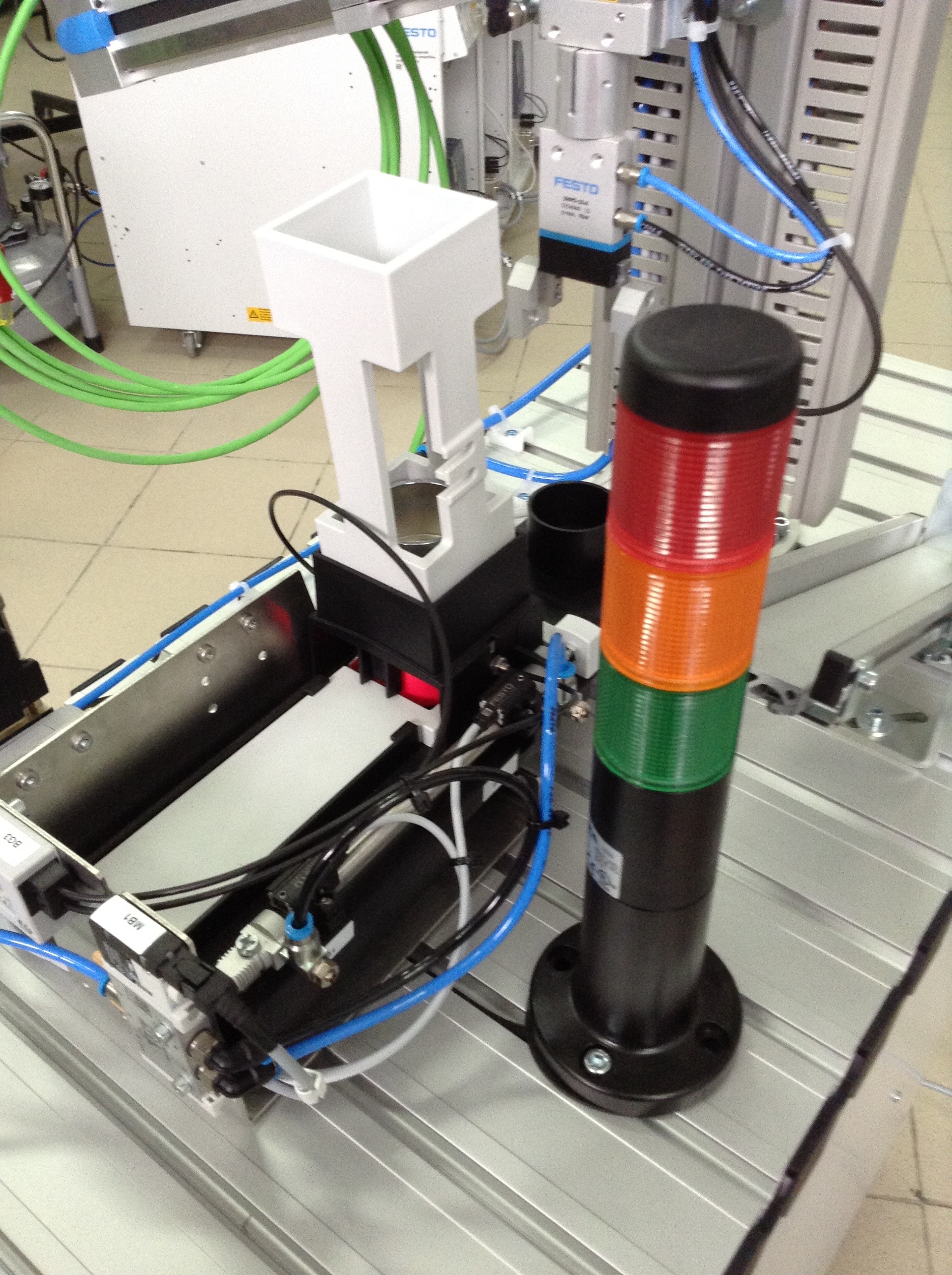 Автоматизированная станция сортировки деталей представляет собой мехатронный комплекс, реализованный на основе серийных средств промышленной автоматизации компаний FESTO, Siemens. Станция может использоваться автономно, а также может входить в состав более сложных автоматизированных производственных систем. |