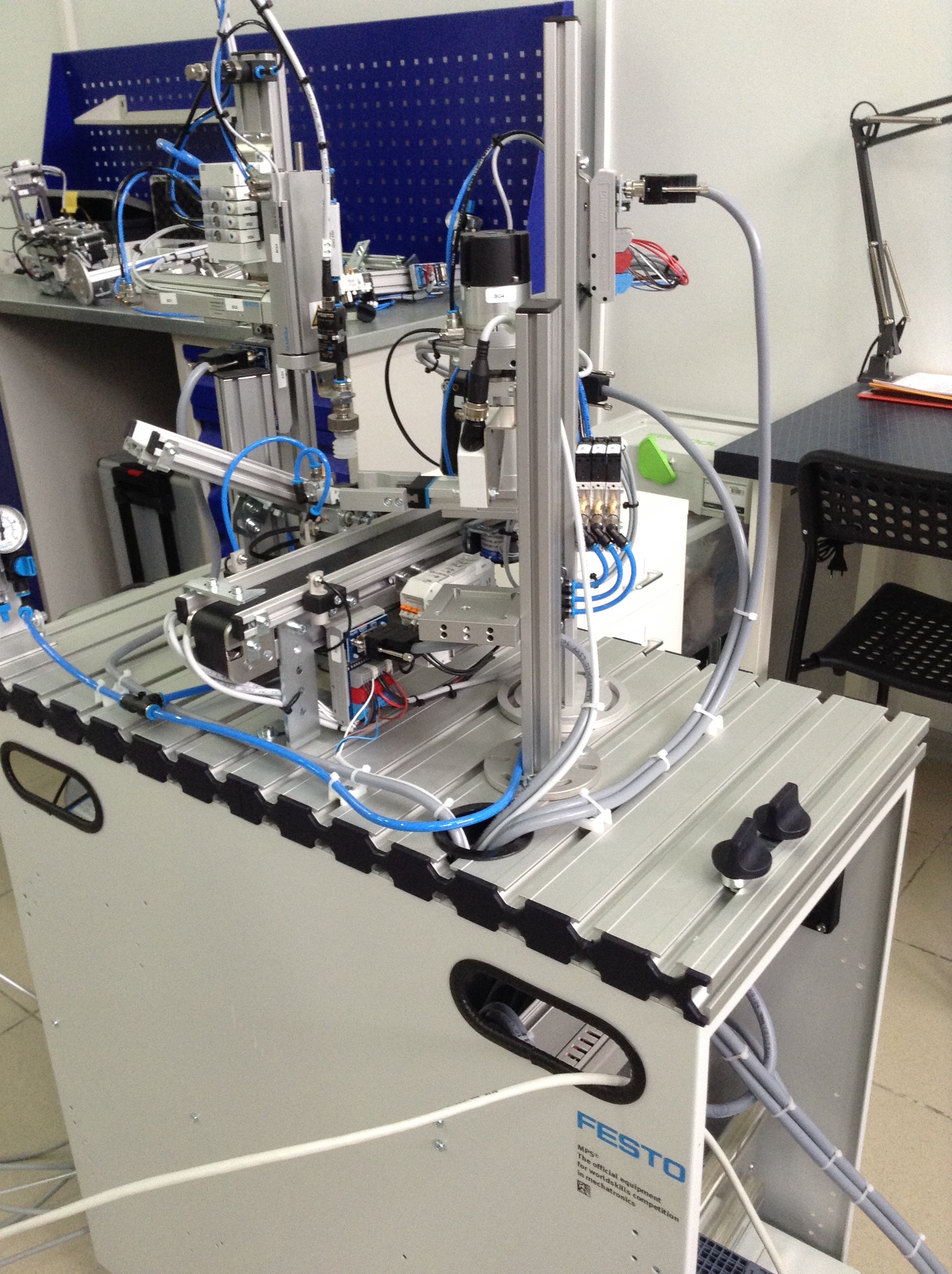 Система MPS - модульные производственные станции предназначены для обучения основам мехатроники. Возможны выполнения комплексных упражнений. Небольших и многоуровневых проектов на нескольких объединенных станциях MPS. |