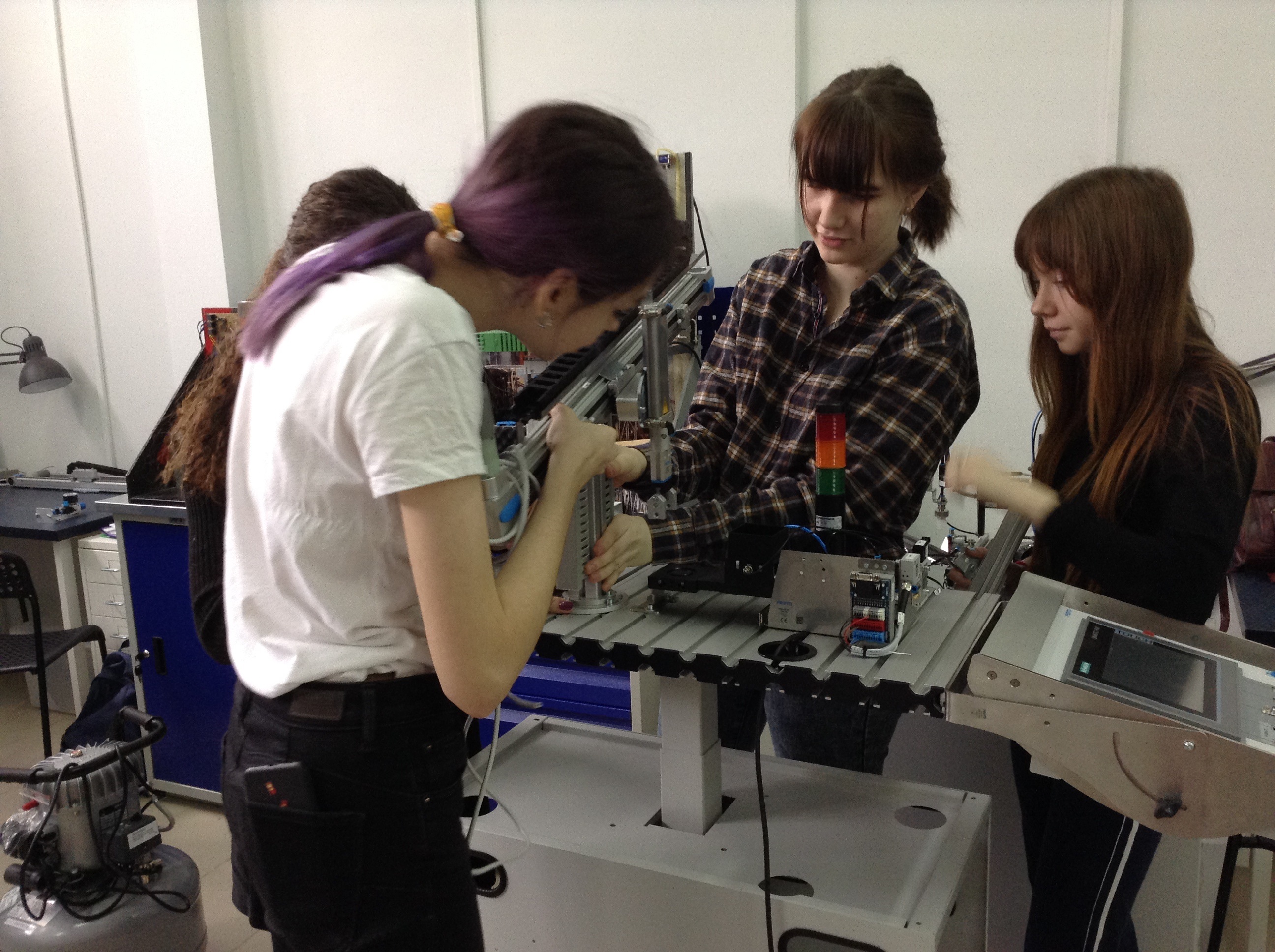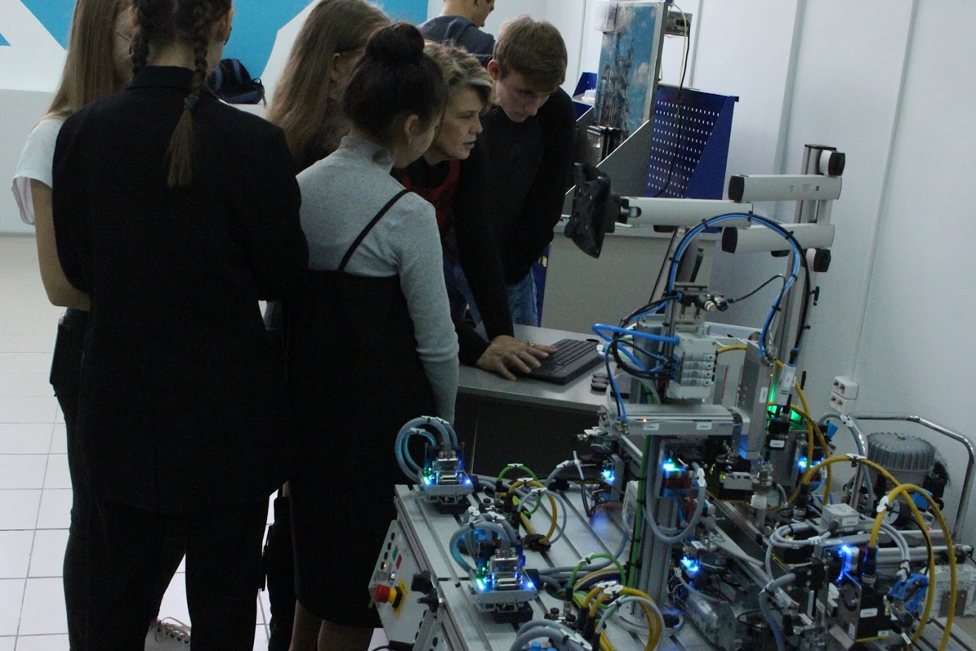 Школьники и студенты опробовали свои силы в программировании мехатронных станций, а так же их принцип работы: станция «Склад», станция «Комплектация», станция «Сортировки».