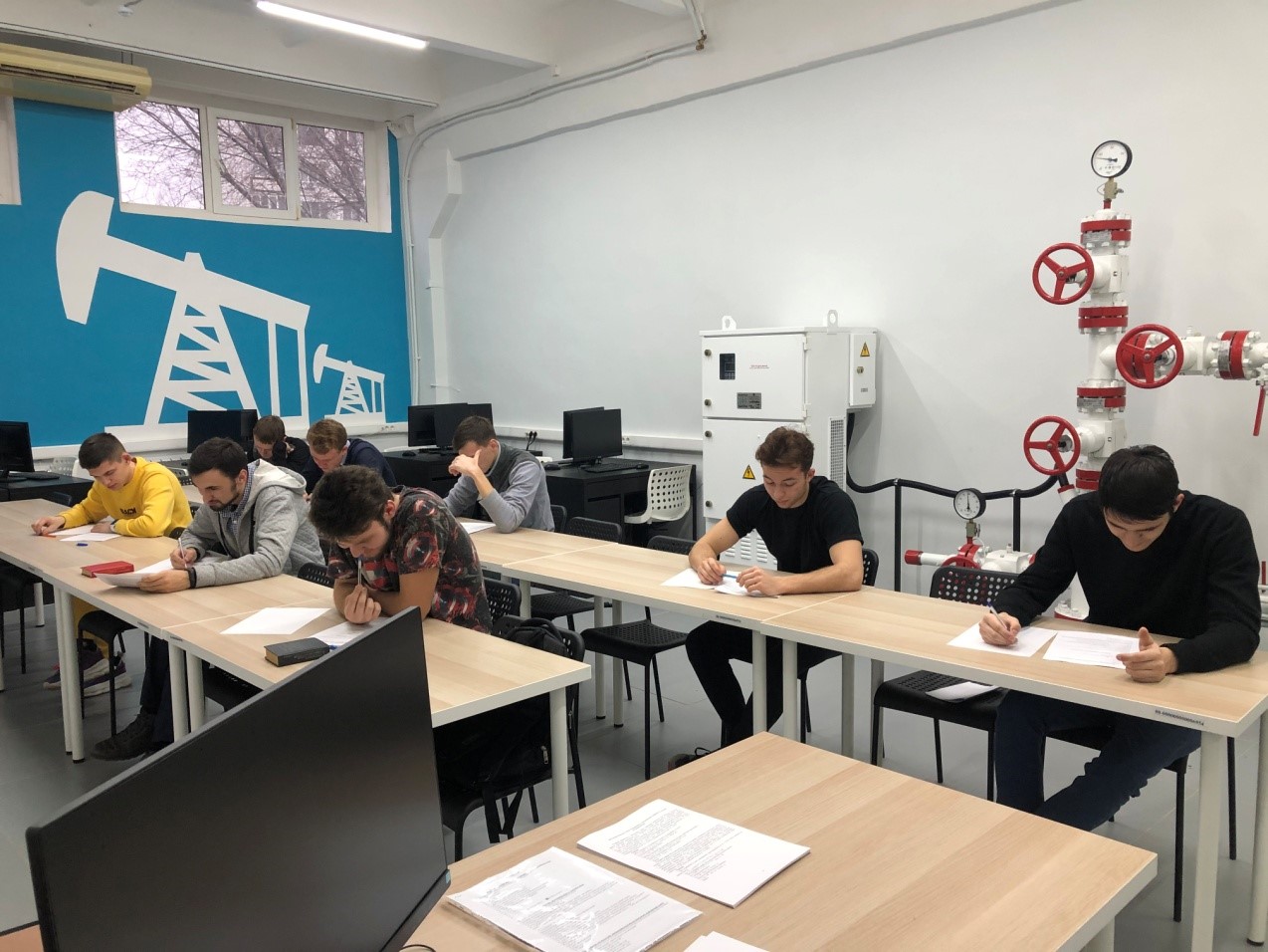 Все практические занятия проводились в новейшей лаборатории 215 "Обслуживание скважины, эксплуатируемой установкой электроцентробежного насоса".