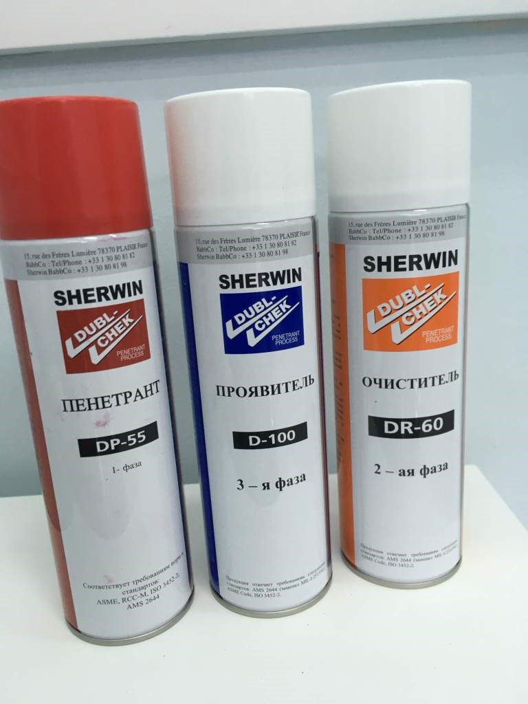 Набор для цветной дефектоскопии (Sherwin) - для проведения цветной дефектоскопии (для контроля поверхностных дефектов размером от 0,5 мкм) |