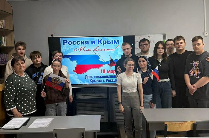 18 марта 2026 года в Лиманском филиале Астраханского государственного политехнического колледжа (АГПК) прошли мероприятия, приуроченные к памятной дате — годовщине воссоединения Крыма и Севастополя с Россией.