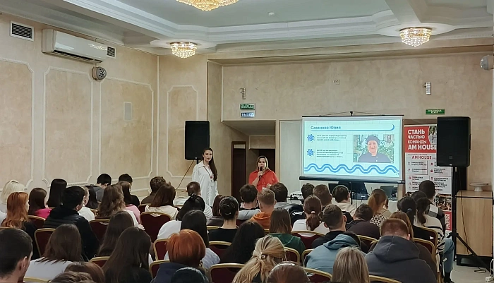 Спикером выступила начальник отдела кадров Нахратова Алла Иозовна, которая подробно рассказала о специфике работы организации, основных направлениях её деятельности, а также требованиях, предъявляемых к молодым специалистам.