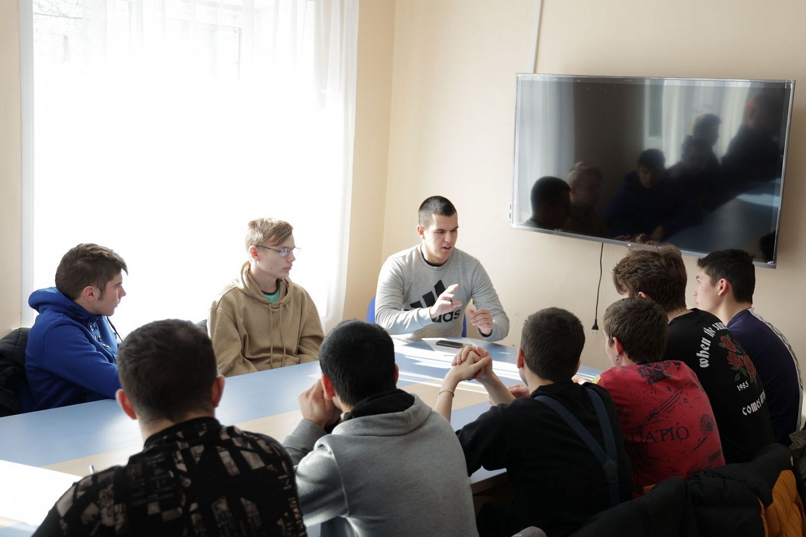 Первая встреча участников военно-патриотического клуба «Наследники Победы» прошла в Астраханском государственном политехническом колледже на минувшей неделе. Участвовать в работе сообщества изъявили желание более 70-ти студентов разных курсов. Руководитель клуба Артём Витальевич Коленко рассказал ребятам о целях и задачах военно-патриотической работы. Он ознакомил студентов с уставом и примерной программой мероприятий клуба, в которую все желающие могли внести свои предложения.