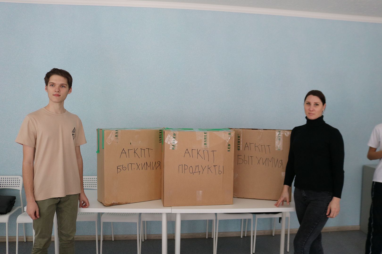 Гуманитарную помощь в Центр сегодня привезли студенты и преподаватели Камызякского сельскохозяйственного колледжа, Астраханского государственного колледжа профессиональных технологий, Астраханского базового медицинского колледжа и Волго-Каспийского морского рыбопромышленного колледжа. Также гуманитарная помощь поступила от студентов, преподавателей,  сотрудников АГПК и жителей близлежащих домов.