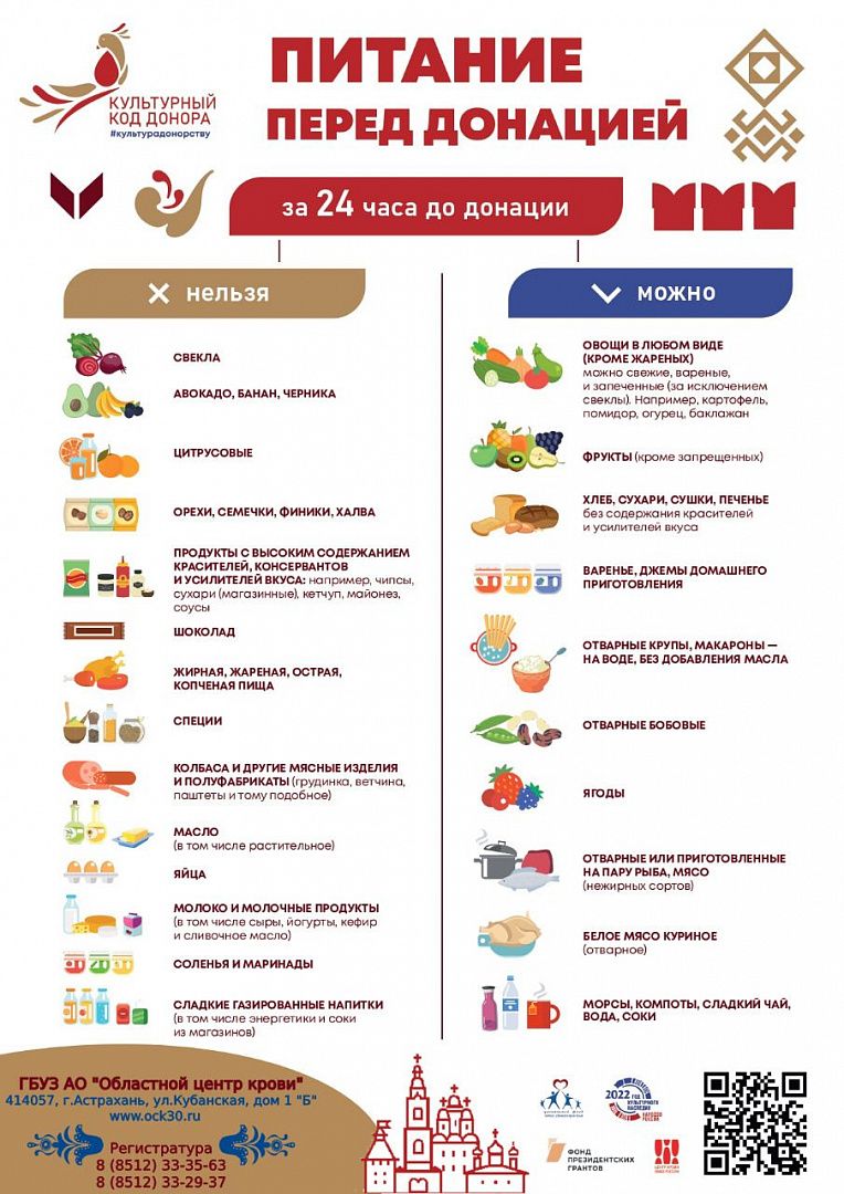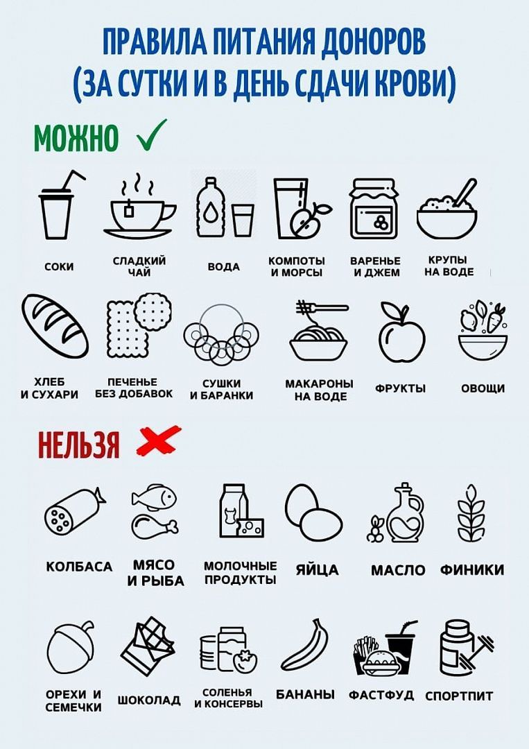 За сутки и в день донации важно соблюдать пищевой режим.