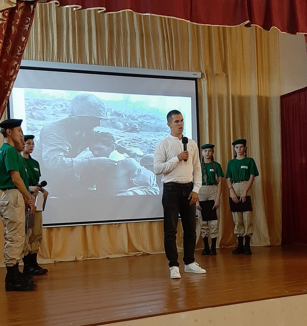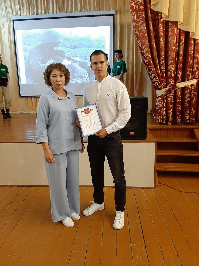 В заключение встречи директор Озерновской школы Айгуль Нургалиева вручила руководителю клуба «Наследники Победы» благодарность за «активную работу по патриотическому воспитанию подрастающего поколения».