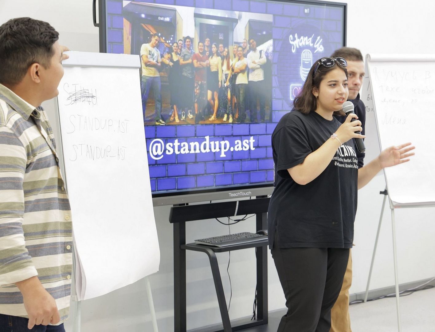В завершение мероприятия резиденты клуба «Stand Up Ast» пригласили всех желающих в свою команду, где научат писать шутки и уверенно выступать перед аудиторией.
