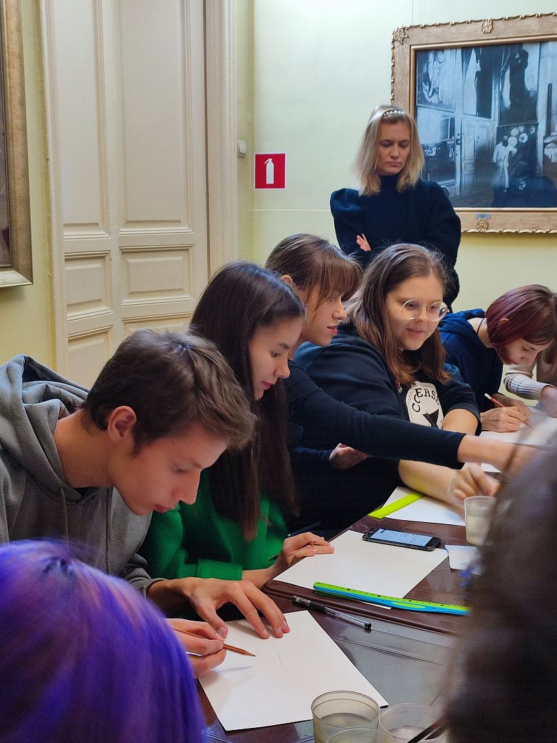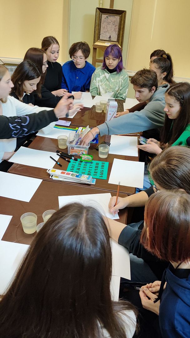 Студенты групп ГРД-2109 и ГРД-394 отделения информационных технологий экономики и права вместе с кураторами Скриповой И. Г и Беловой Л. А посетили творческие занятия Дома-музея Велимира Хлебникова в рамках выставки проекта «Русский букварь».