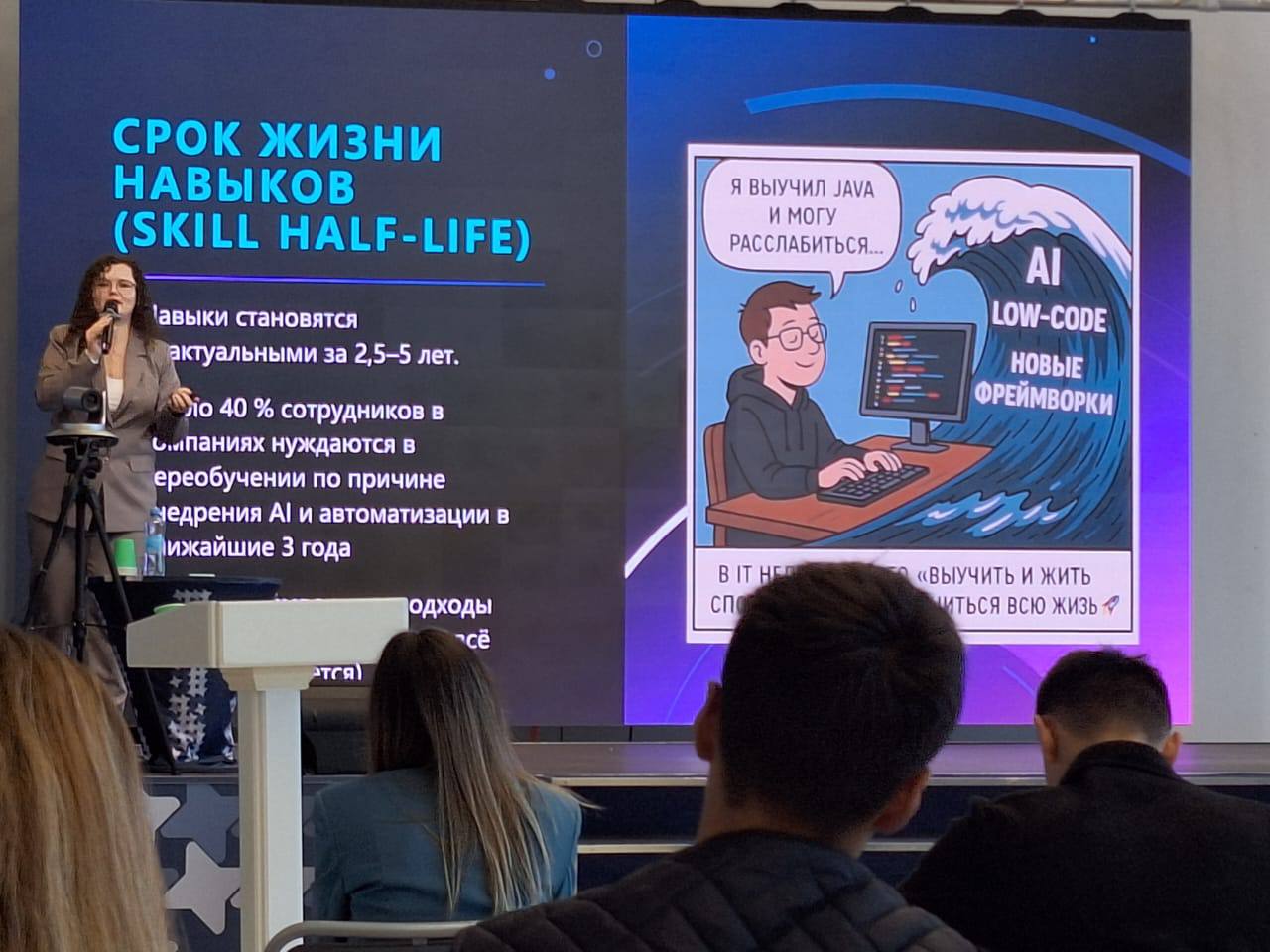 В деловой части участникам представили возможности искуственного интеллекта, стратегии его внедрения в корпоративные процессы и перспективы развития отрасли. Спикерами выступили представители ведущих российских и астраханских компаний: Елена Булдакова и Никита Новицкий (Поволжский банк ПАО «Сбербанк»), Артём Южин («Сбер»), Роман Хазеев (ООО «РТК ИТ»), Оксана Ошмарина (Академия ТОП, Астрахань).