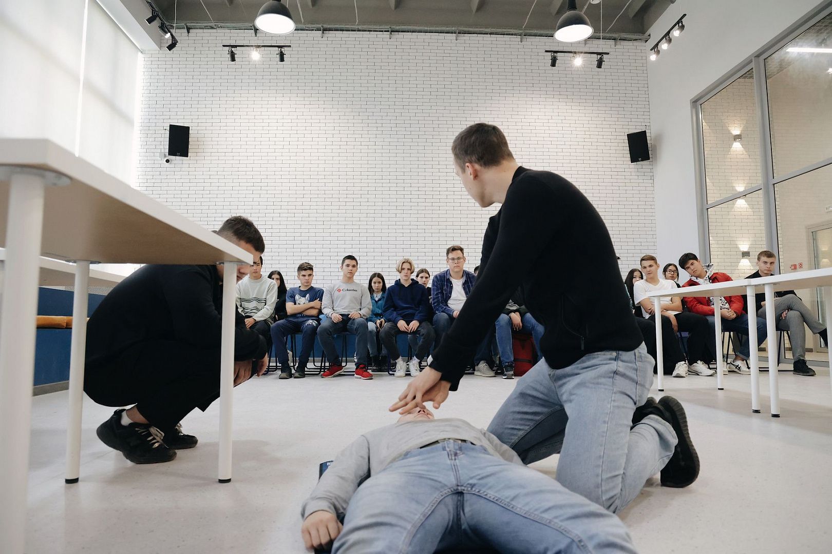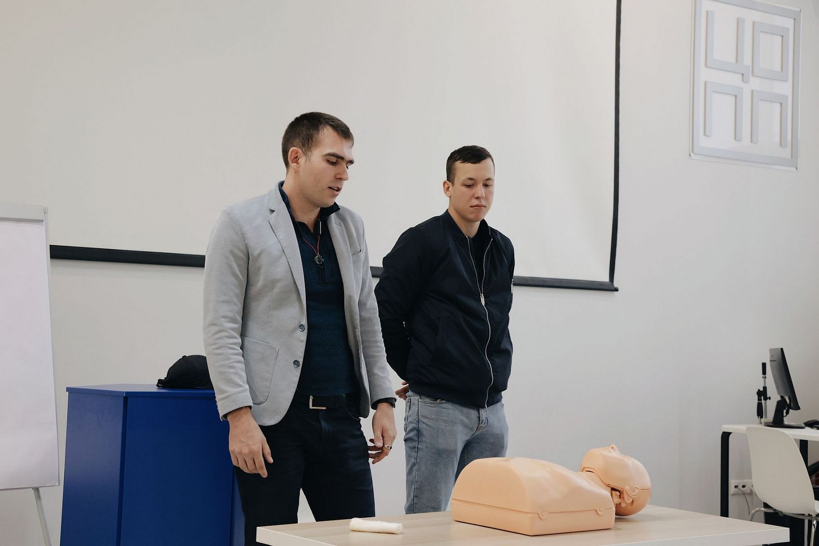 Они отработали со студентами навыки оказания первой помощи пострадавшим при различных условиях травмирования: отсутствии сознания, остановке дыхания и кровообращения, при наружных кровотечениях, травмах и прочих состояниях.