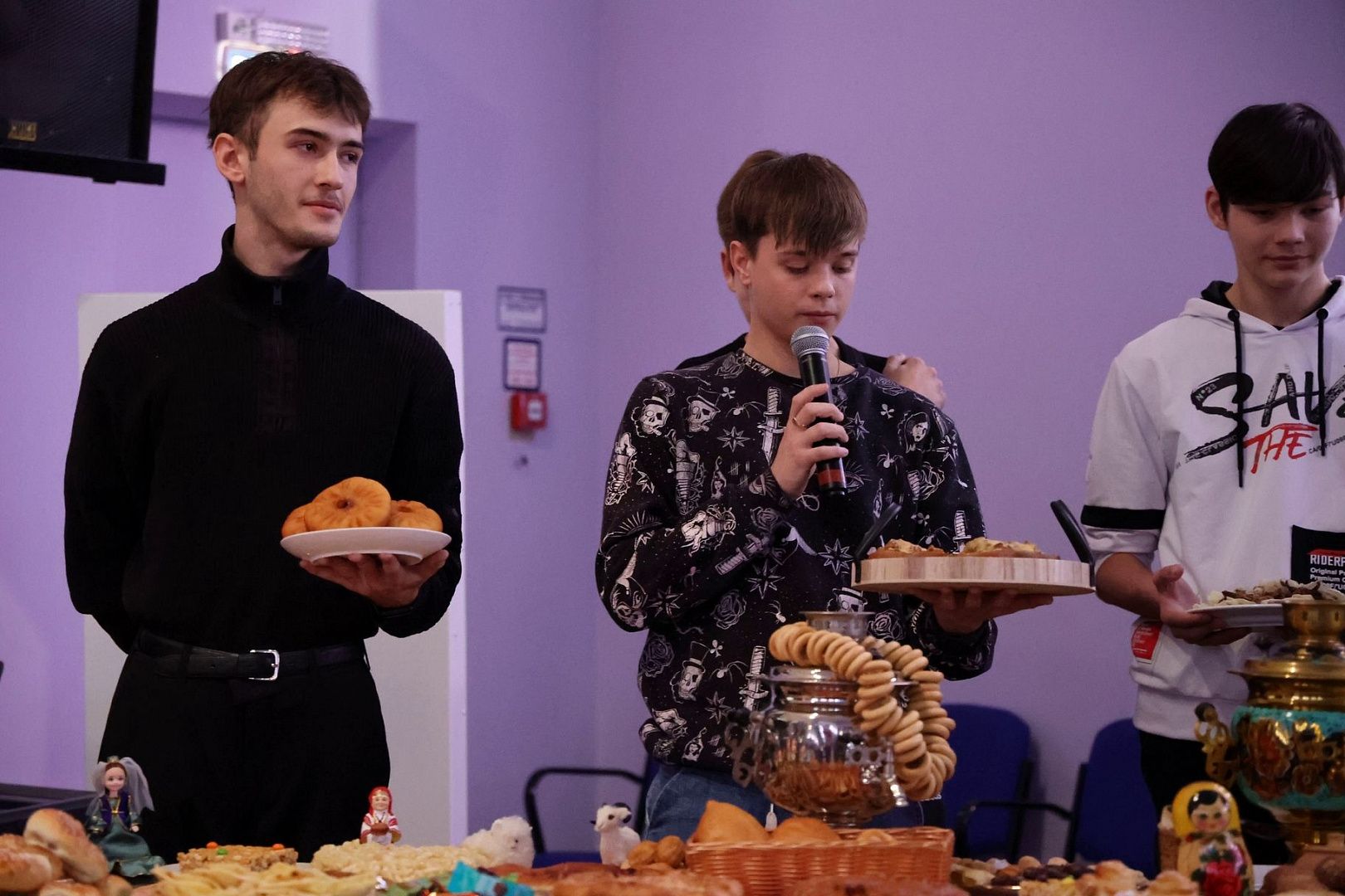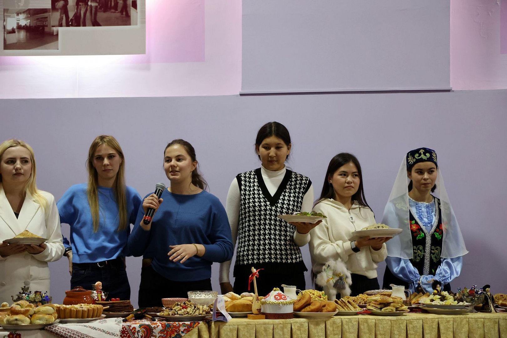 После концертной программы свои угощения гостям представили студенты специальности «Поварское и кондитерское дело». Ребята приготовили татарские пярямяч, чак-чак и эчпочмак, армянские пахлаву, печеньем гата, и ачму, казахские баурсаки, куймак, русские блины, пироги и т.д.