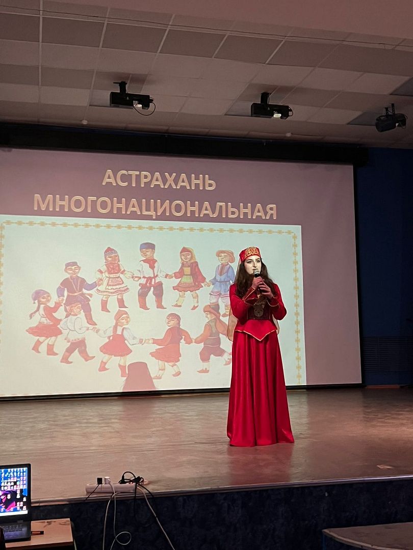 В актовом зале Астраханского государственного политехнического колледжа прошло заключительное мероприятие в рамках празднования Дня народного единства. Концертную программу «Астрахань многонациональная» подготовили студенты и преподаватели отделения сервисных технологий и дизайна. Почётным гостем мероприятия стала руководитель Астраханского кулинарного цеха татарской кухни Руфия Юсупова.