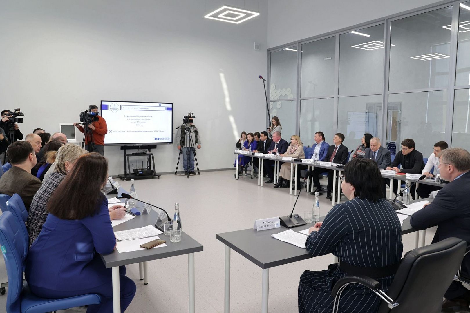 После осмотра аудиторий Центра опережающей профессиональной подготовки губернатор провёл совещание с руководителями средних профессиональных организаций Астраханской области и представителями министерства образования и науки региона. Глава минобрнауки Егор Андреевич Угаров рассказал собравшимся об итогах работы системы СПО Астраханской области в 2022 году и задачах на 2023-й.