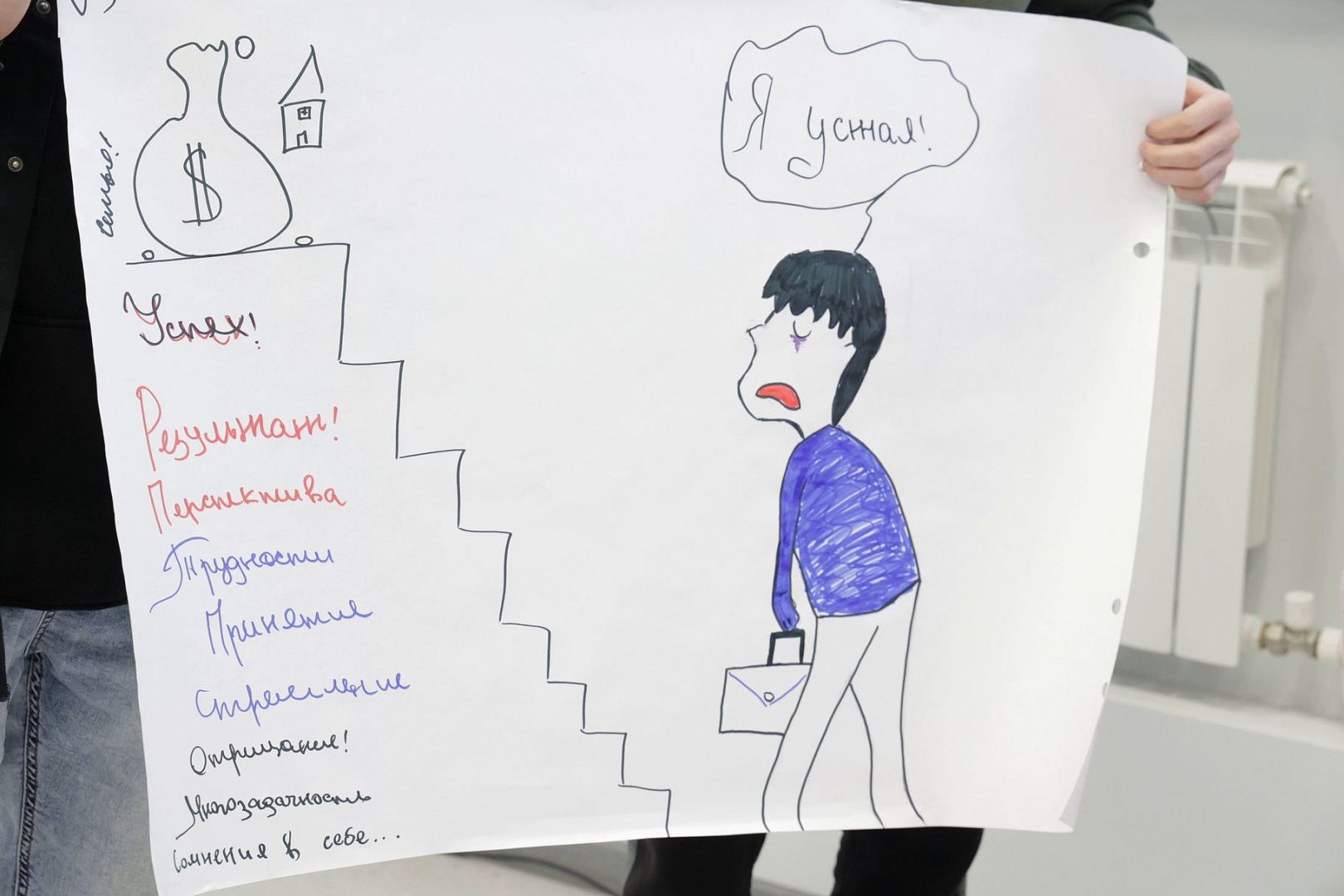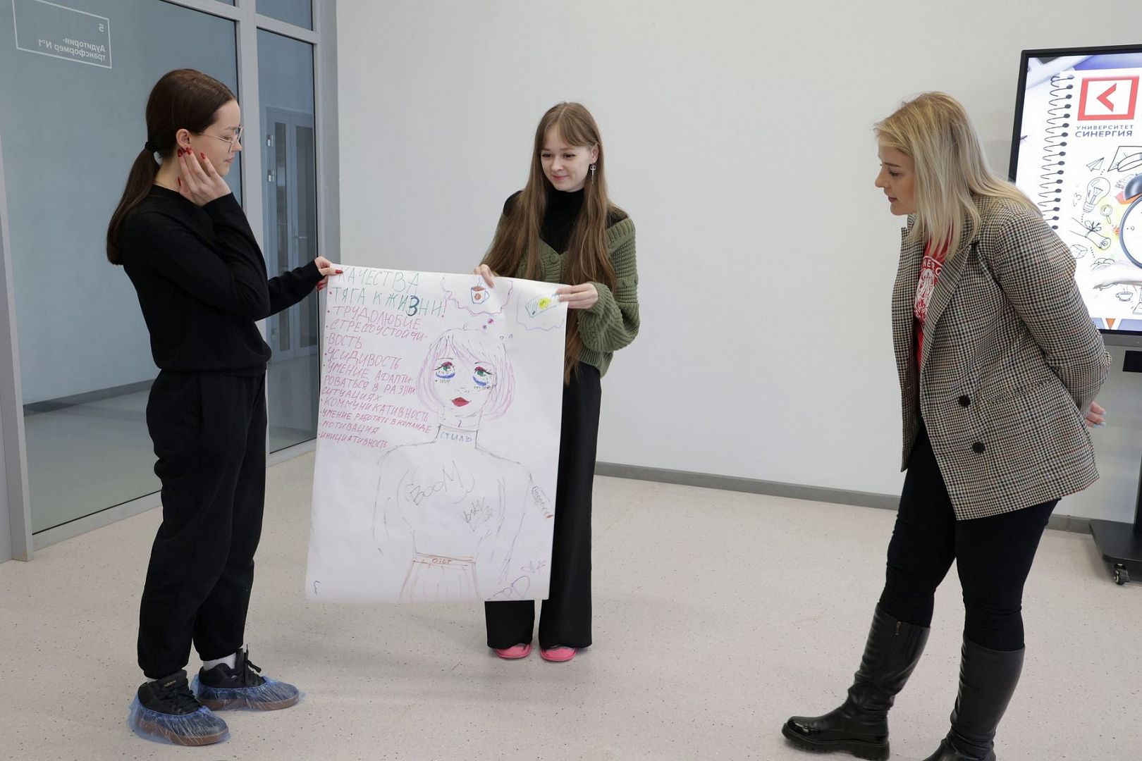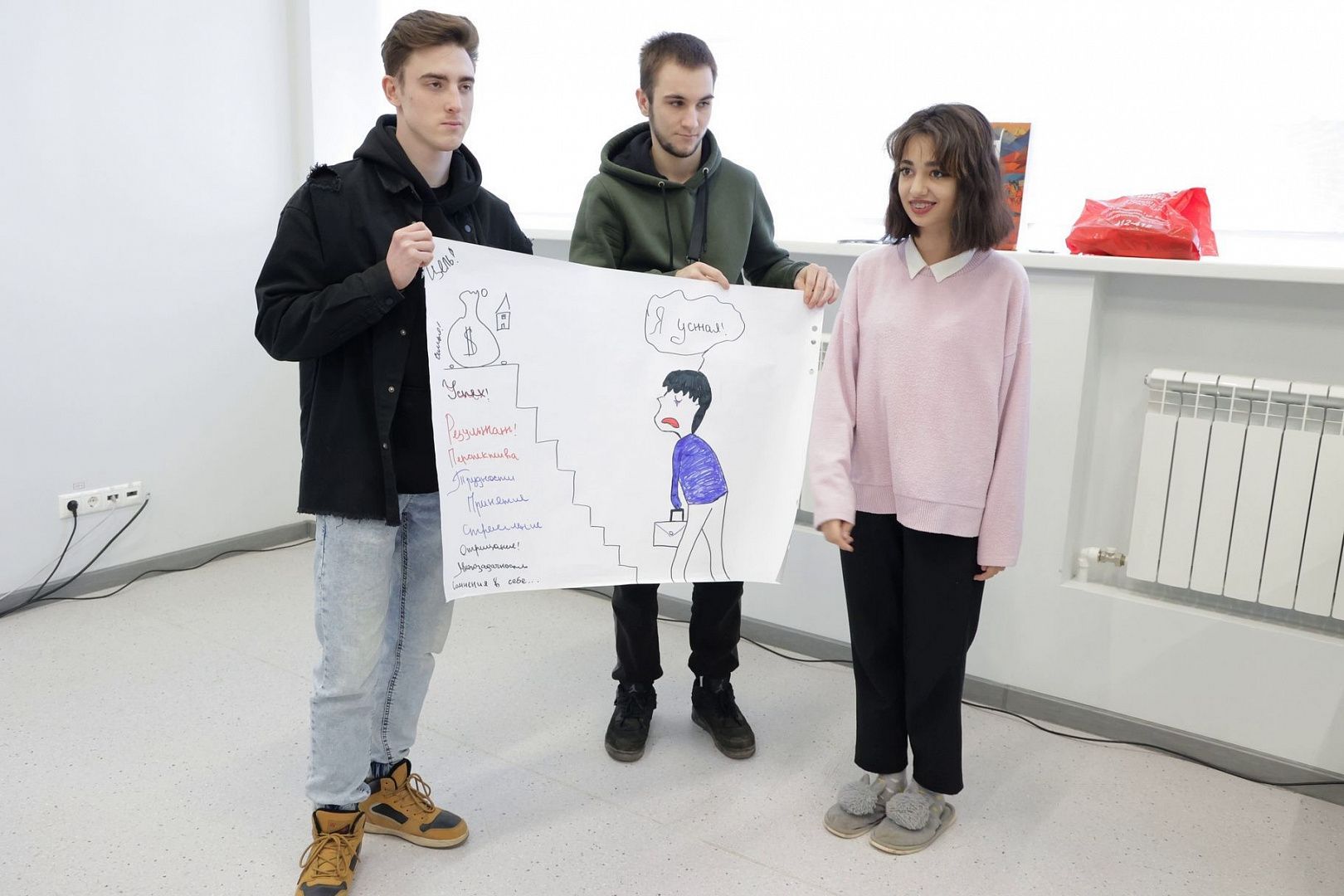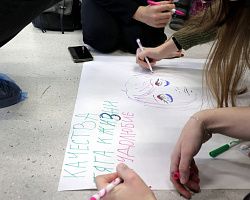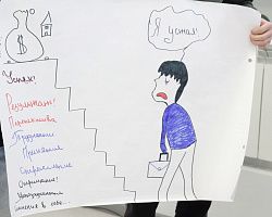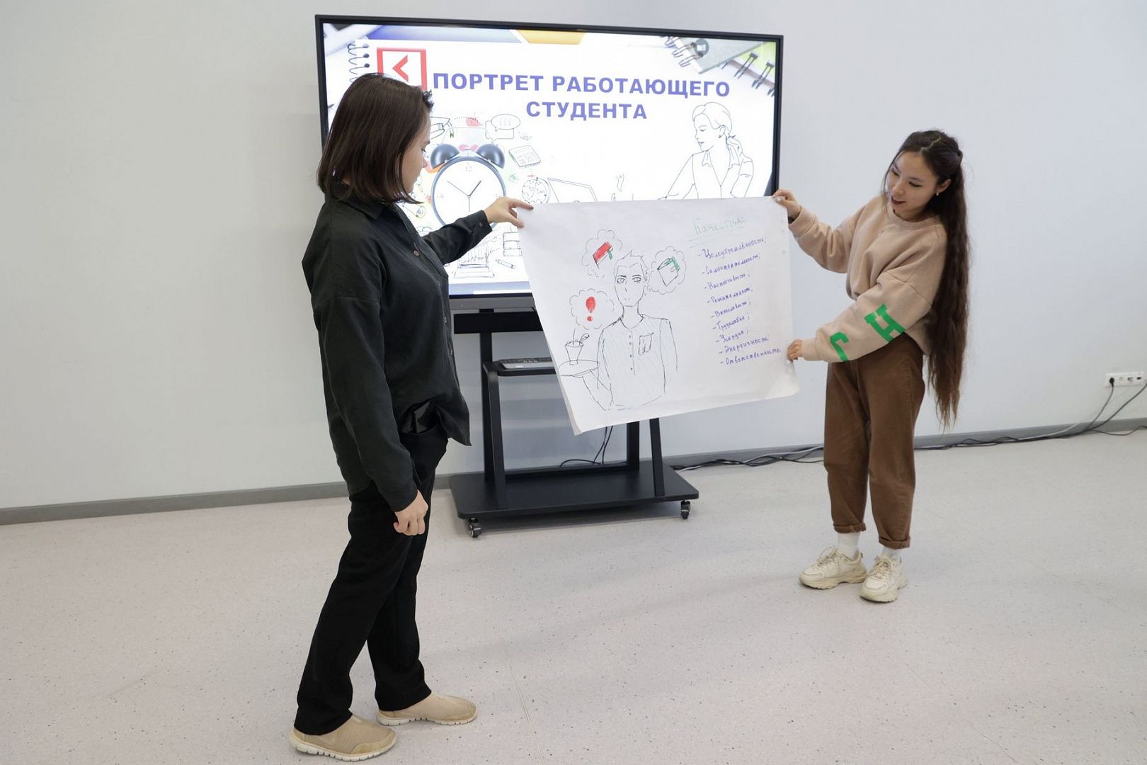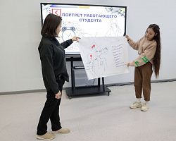Разделившись на команды, ребята нарисовали портрет работающего студента и приняли активное участие в обсуждении темы.