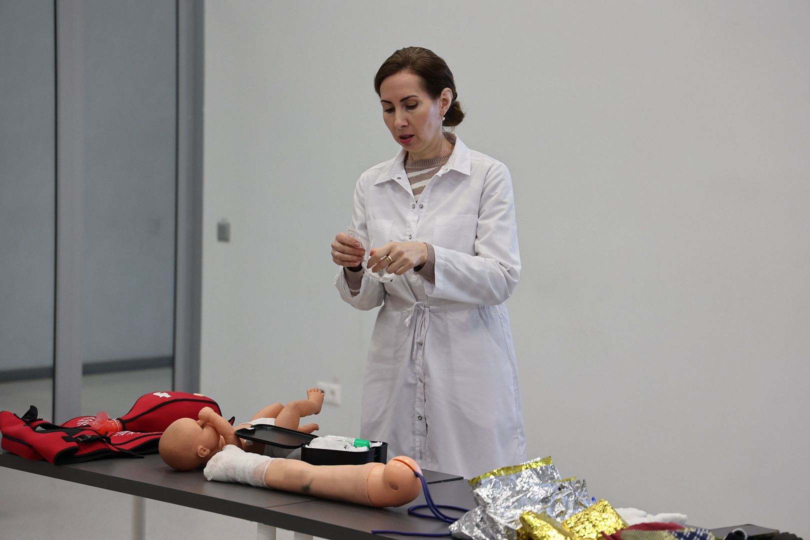 Студенты на практике освоили ключевые навыки первой помощи: непрямой массаж сердца и искусственное дыхание, оказание помощи при попадании инородного тела в дыхательные пути взрослым и младенцам, а также первую помощь при ожогах, солнечном ударе и переохлаждении. Каждый участник самостоятельно отработал приемы под руководством опытных медицинских специалистов.