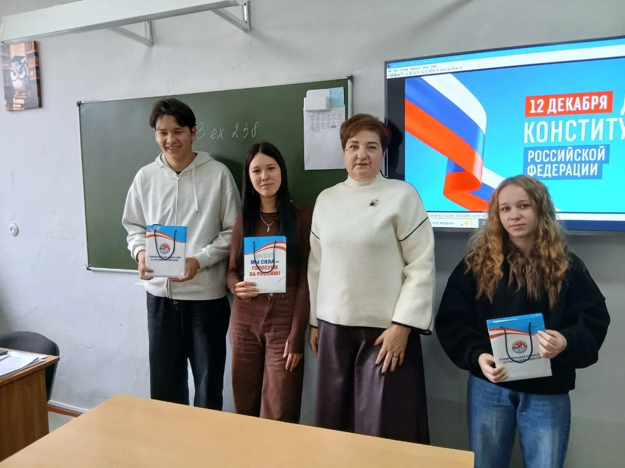 По итогам правового часа Инна Викторовна провела небольшое тестирование по теме встречи, позволив студентам закрепить полученные знания и оценить свой уровень правовой грамотности. Обучающиеся, набравшие наибольшее количество правильных ответов, были отмечены памятными подарками, что стало дополнительным стимулом к изучению Конституции и избирательного права.