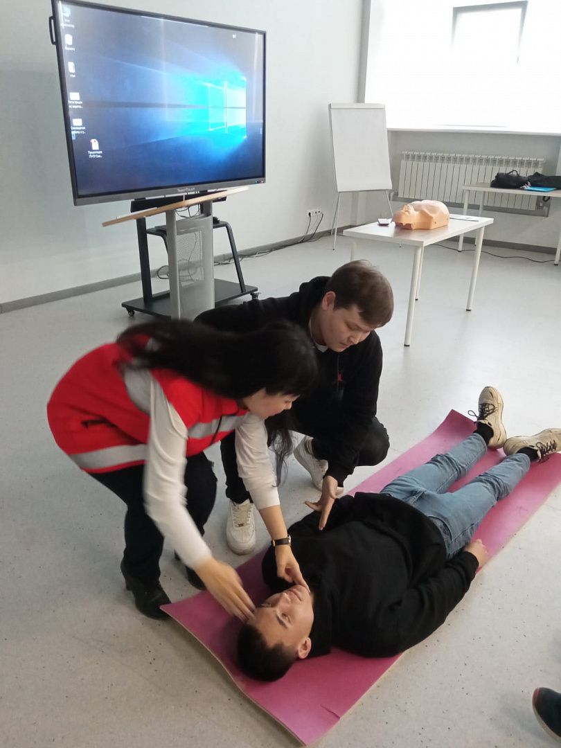 Учащиеся колледжа познакомились с основными принципами оказания первой помощи, а также с алгоритмами действий и правилами поведения в различных ситуациях. В частности, юноши и девушки узнали, как помочь пострадавшему принять восстановительное положение и как выполняется сердечно-лёгочная реанимация.