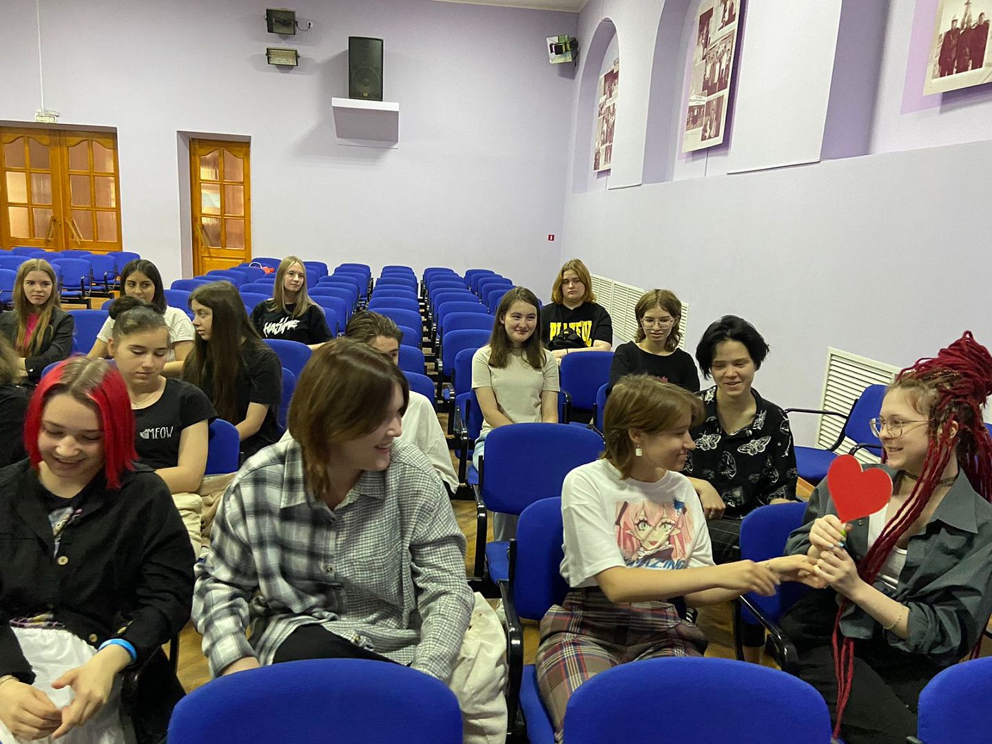 Студенты просмотрели познавательные видеоролики, а в конце встречи приняли участие в увлекательной игре «От сердца к сердцу». Ребята передавали друг другу символ сердца и говорили приятные, добрые слова.