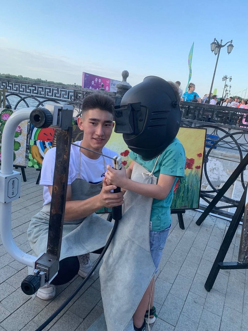 Кроме того, все желающие смогли поработать на сварочном тренажёре, попробовать безалкогольные коктейли наших студентов, проникнуться искусством карвинга и мехенди, а также принять участие в мастер-классах патриотического клуба «Наследники Победы» по сборке-разборке автомата АК-74 и надеванию общевойскового защитного комплекта.