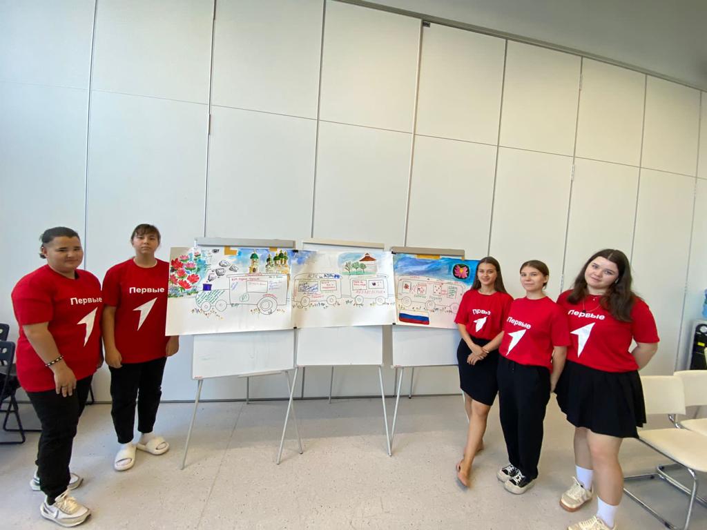 А на базе Центра опережающей профессиональной подготовки прошла акция «Поезд пожеланий». Участники «Движения Первых» создавали плакаты и рисунки с изображением поезда, который символизирует движение, а также объединение регионов нашей страны. Ребята написали пожелания для жителей Донецкой и Луганской народных Республик, Херсонской и Запорожской областей.