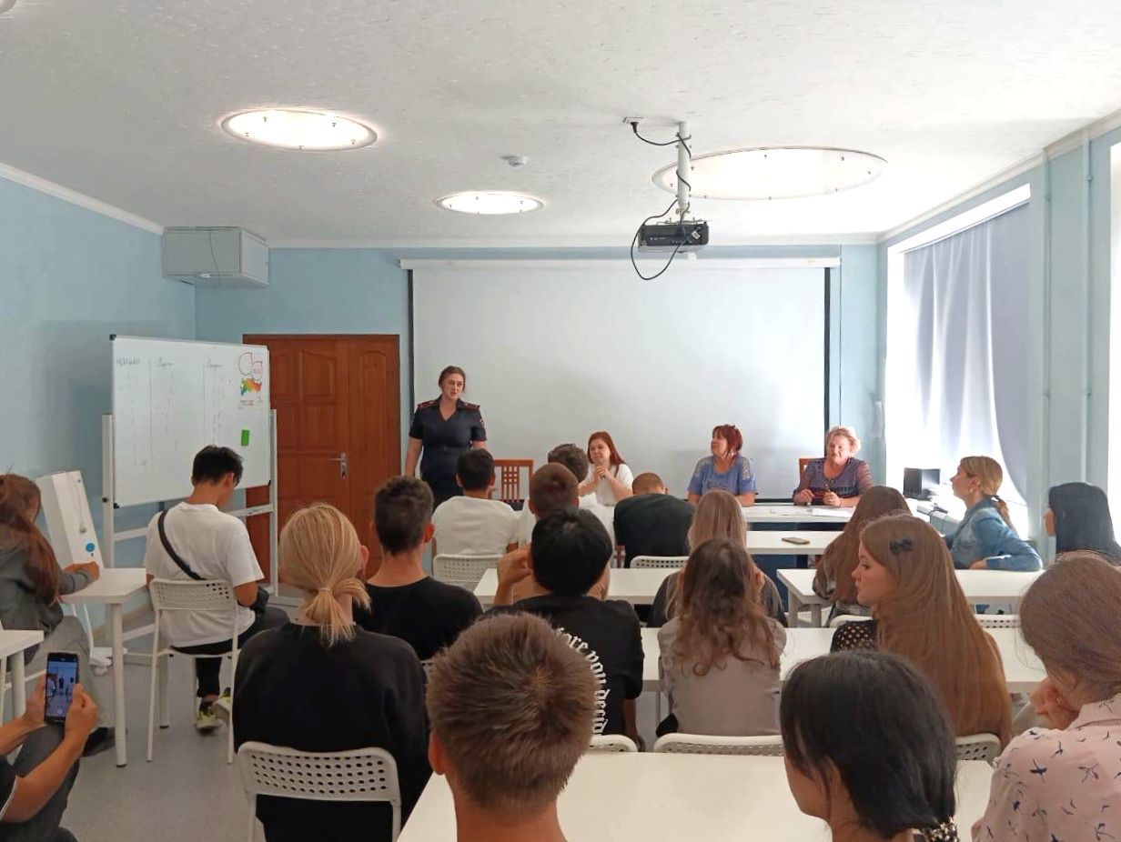 Со студентами пообщалась и инспектор ПДН ОП 4 УМВД России по г. Астрахань Оксана Николаевна Кострова. Она обсудила с ребятами правила поведения в общественном месте, в том числе в ночное время суток, напомнила об административной и уголовной ответственности за правонарушения.