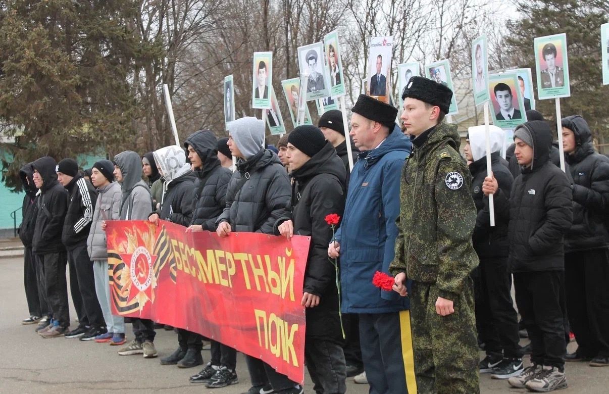 Всероссийская акция «Бессмертный полк» в этот день обрела особый и пронзительный смысл. Студенты выстроились в колонну, держа в руках портреты своих родственников, а также фотографии воинов-интернационалистов — жителей Лиманского района, прошедших через горнило афганской войны. Для многих из ребят эти лица на старых снимках — не просто история, а часть их собственной семьи и малой родины.