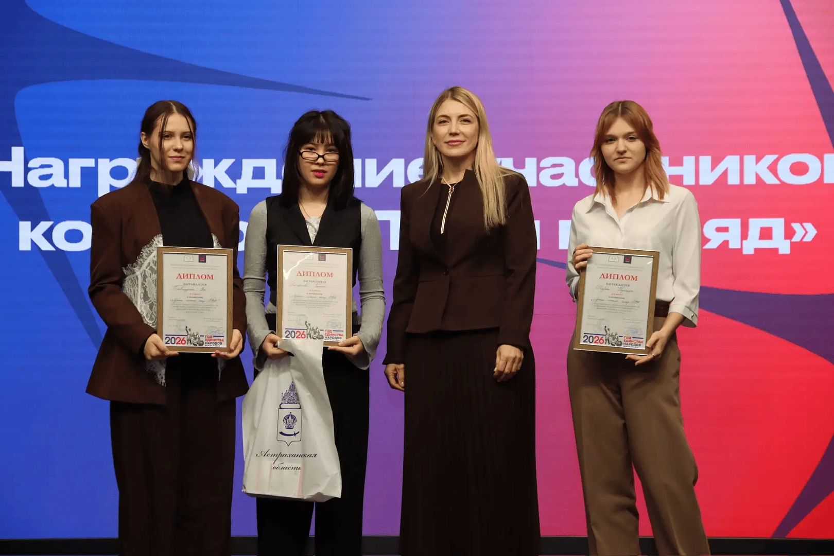 Торжественная церемония награждения состоялась 13 февраля 2026 года в молодёжном центре «Коса» в рамках регионального форума «Траектория безопасности: сила в единстве». Награды студенткам лично вручила министр образования и науки Астраханской области Мария Николаевна Шалак. Министр отметила значимость активной гражданской позиции молодёжи и её вклада в формирование безопасной среды.